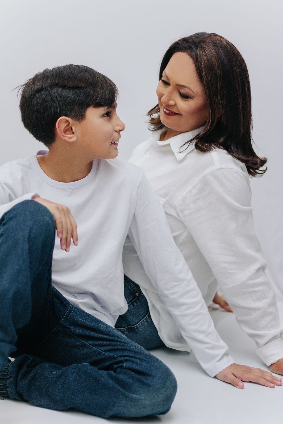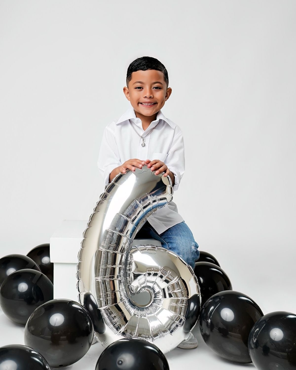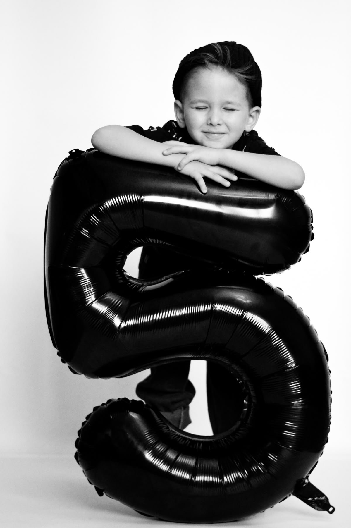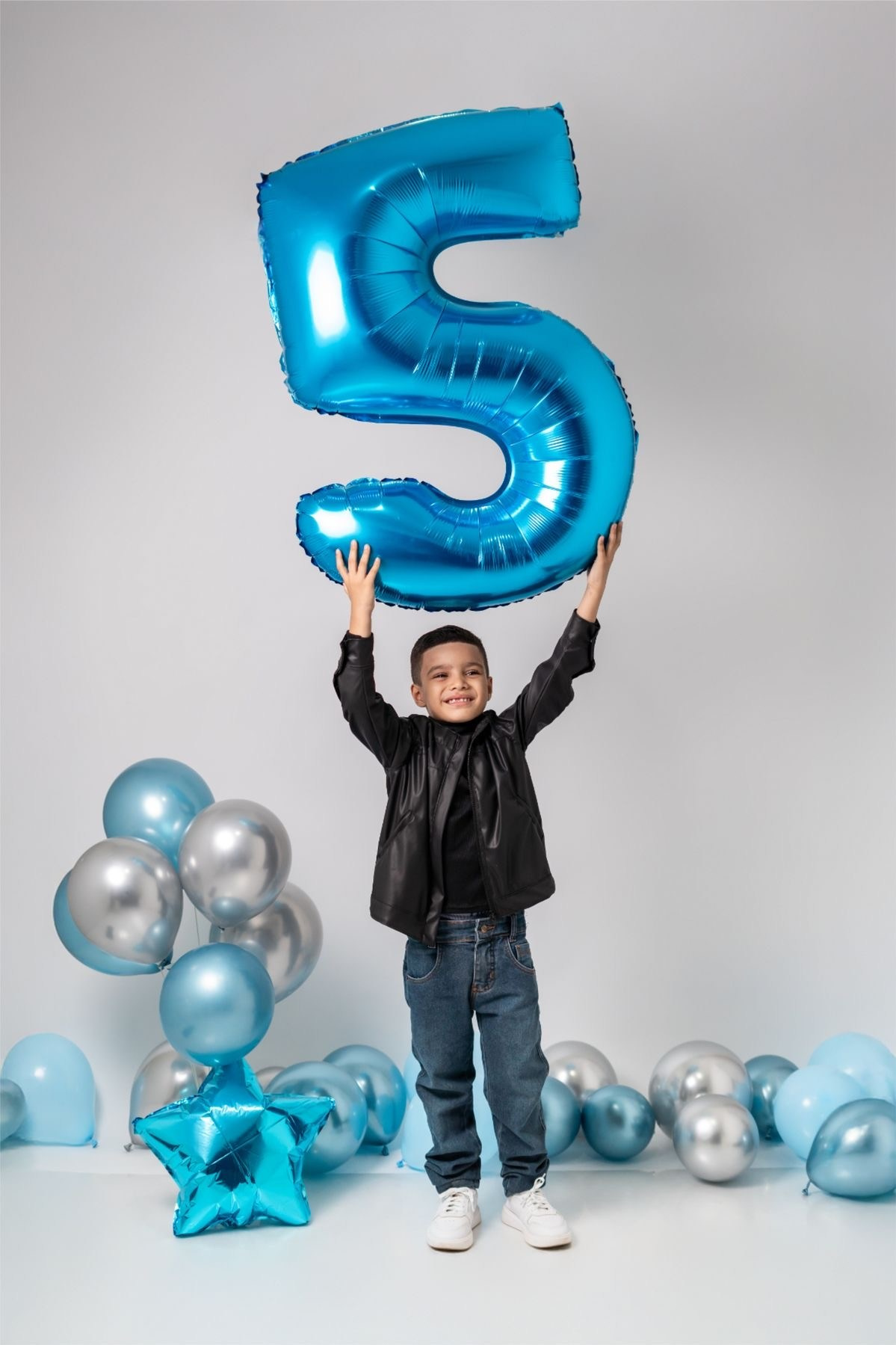 Съёмка в студии с циклорамой. Реквизит и одежда: 1. шарик с цифрой, дополнительные шарики в той же цветовой гамме, что и основная цифра. 2. торт/пирожное/бургер + свечка 3. одежды должно быть 2-3 варианта, для кадров с мамой одежда обоих должна гармонировать по стилю и цвету. Для ребенка это может быть рубашка, брюки или джинсы, костюм, свитшот, футболка, бомбер — все желательно без принтов. Важно продумать подходящую обувь, она должна быть чистой, желательно, не носившейся на улице. Подошву перед съемкой на циклораме надо заклеить малярным скотчем (есть в студии).