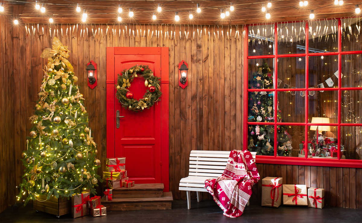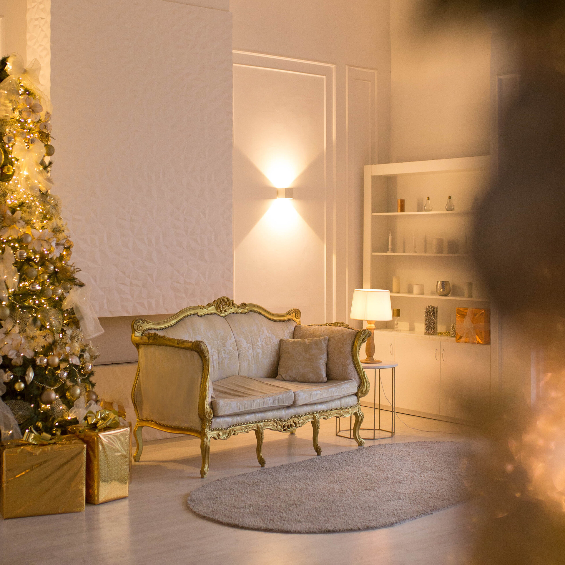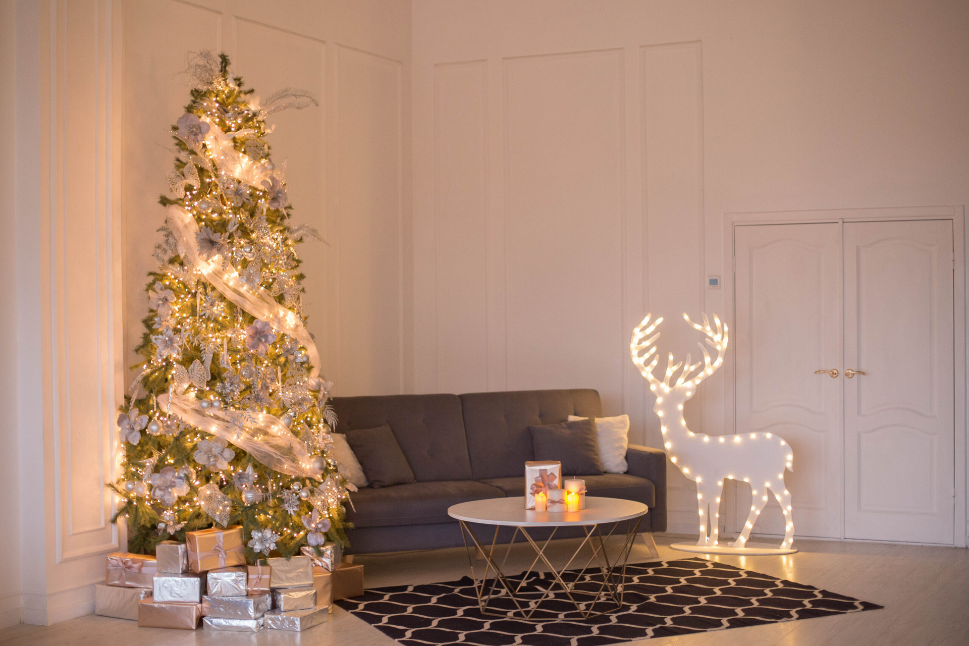 Обе ёлки в зале можно передвигать и убирать, если для вашей съёмки новогодний декор не нужен