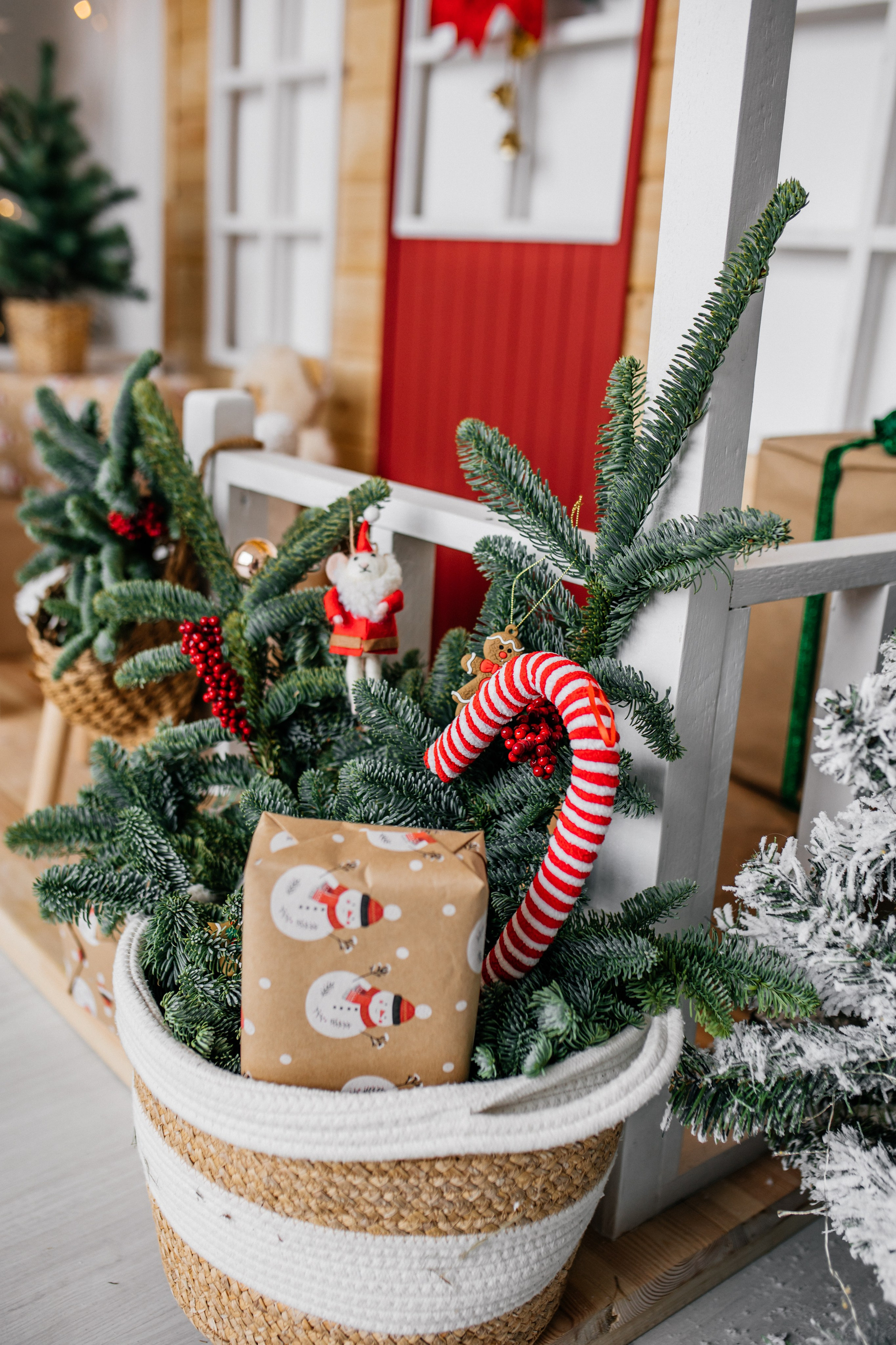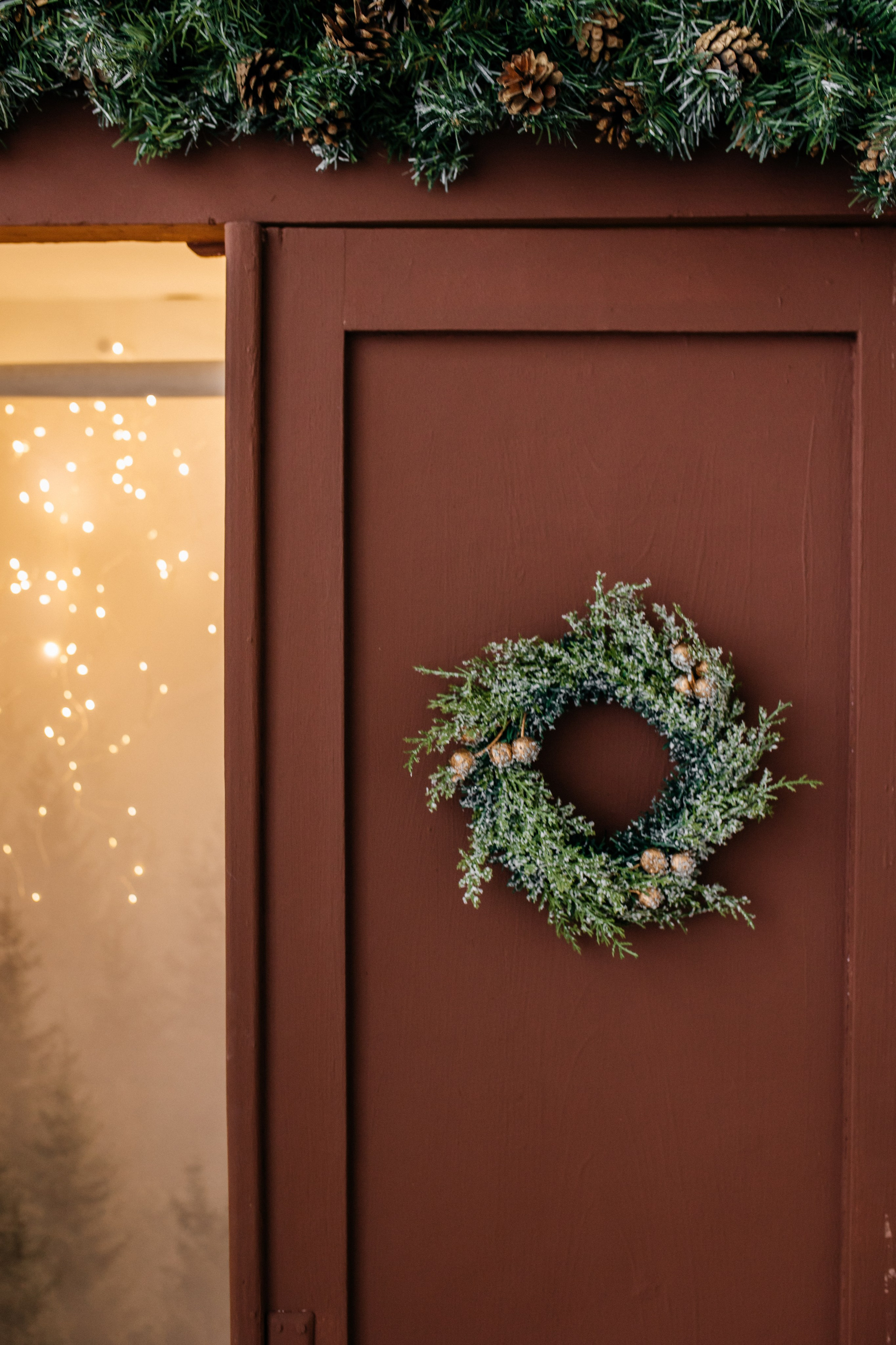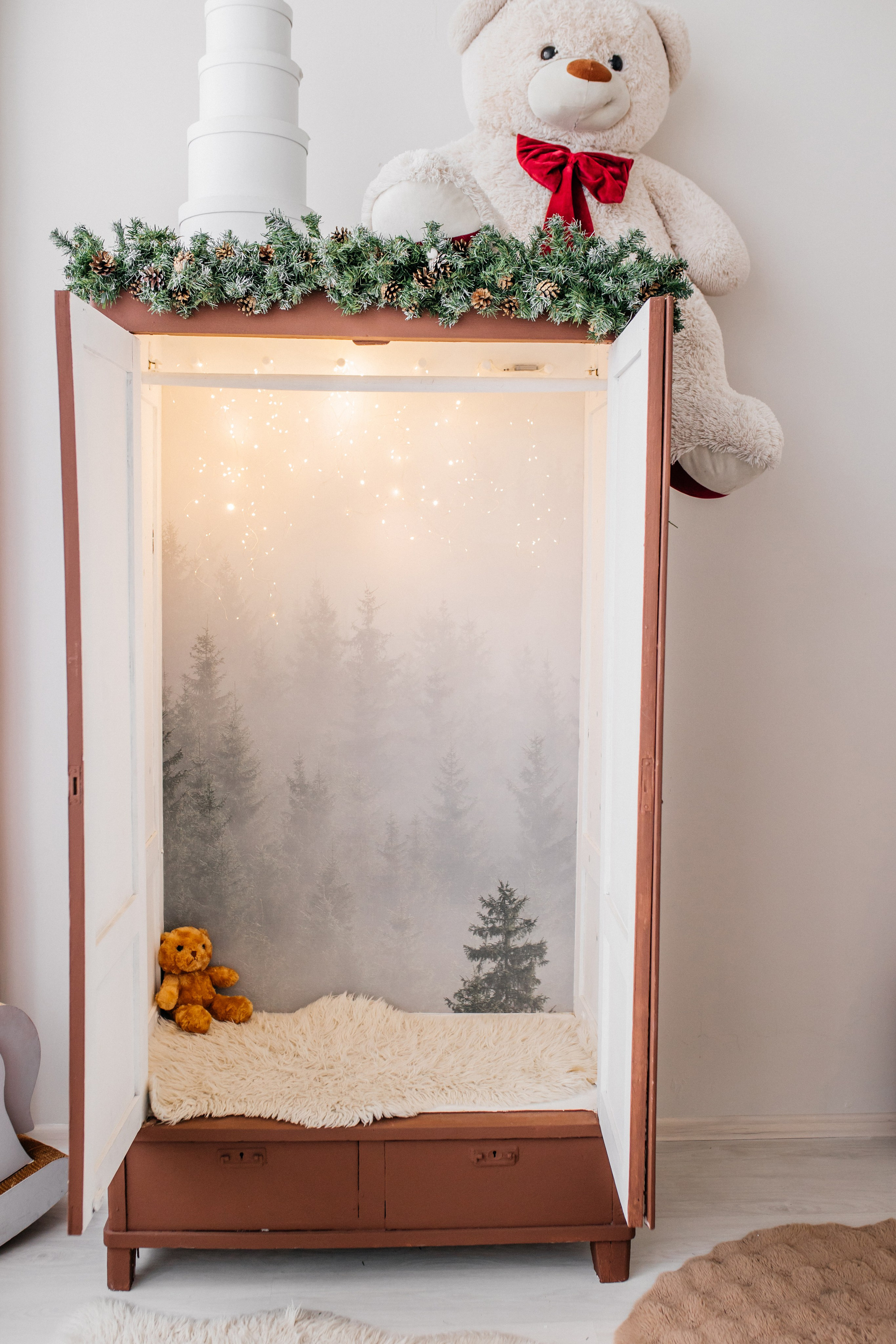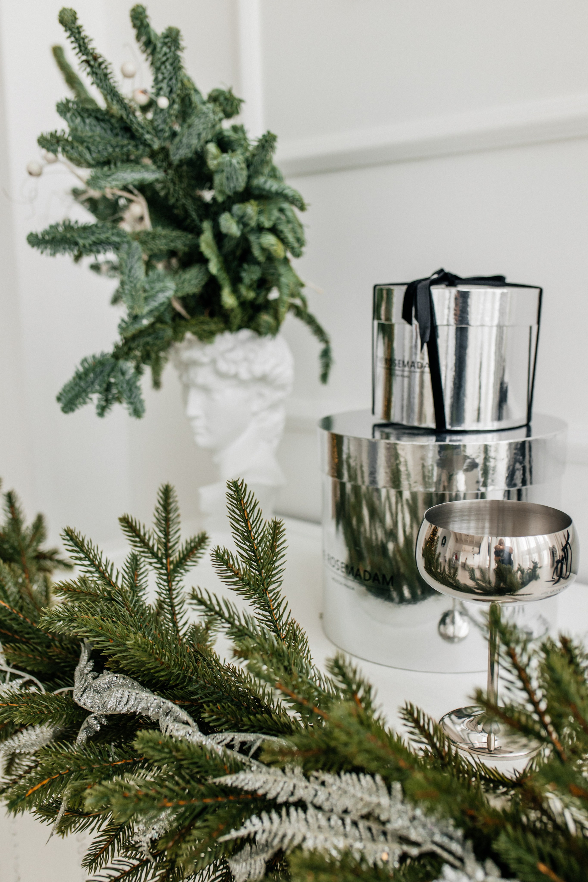 Световая стена, подиум 40 м², панорамные окна в пол, эксклюзивная мебель, камин, электрокамин, уникальные элементы декора, четыре литые ёлки очень схожи с натуральными, кровать в зимнем лесу, черно-белый ромбовидны пол, красная стена.