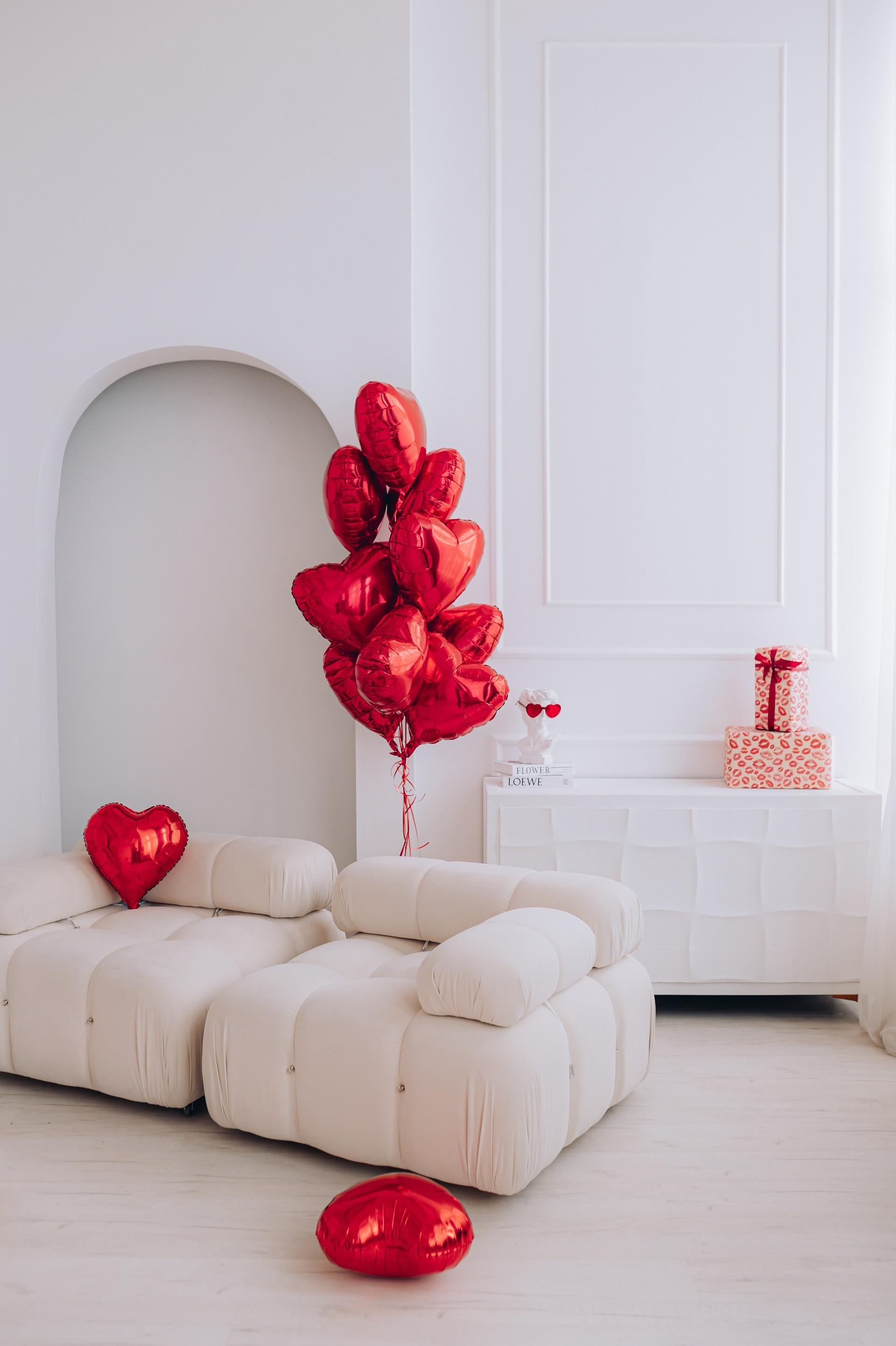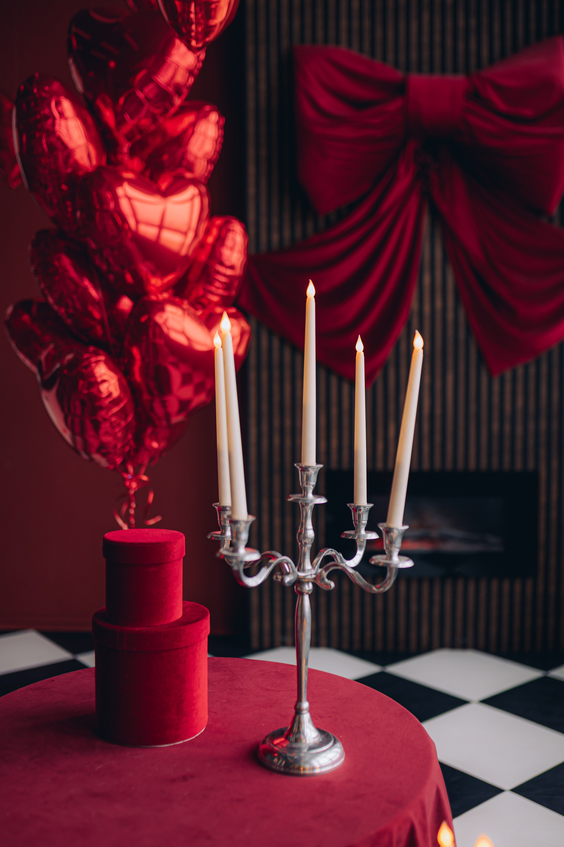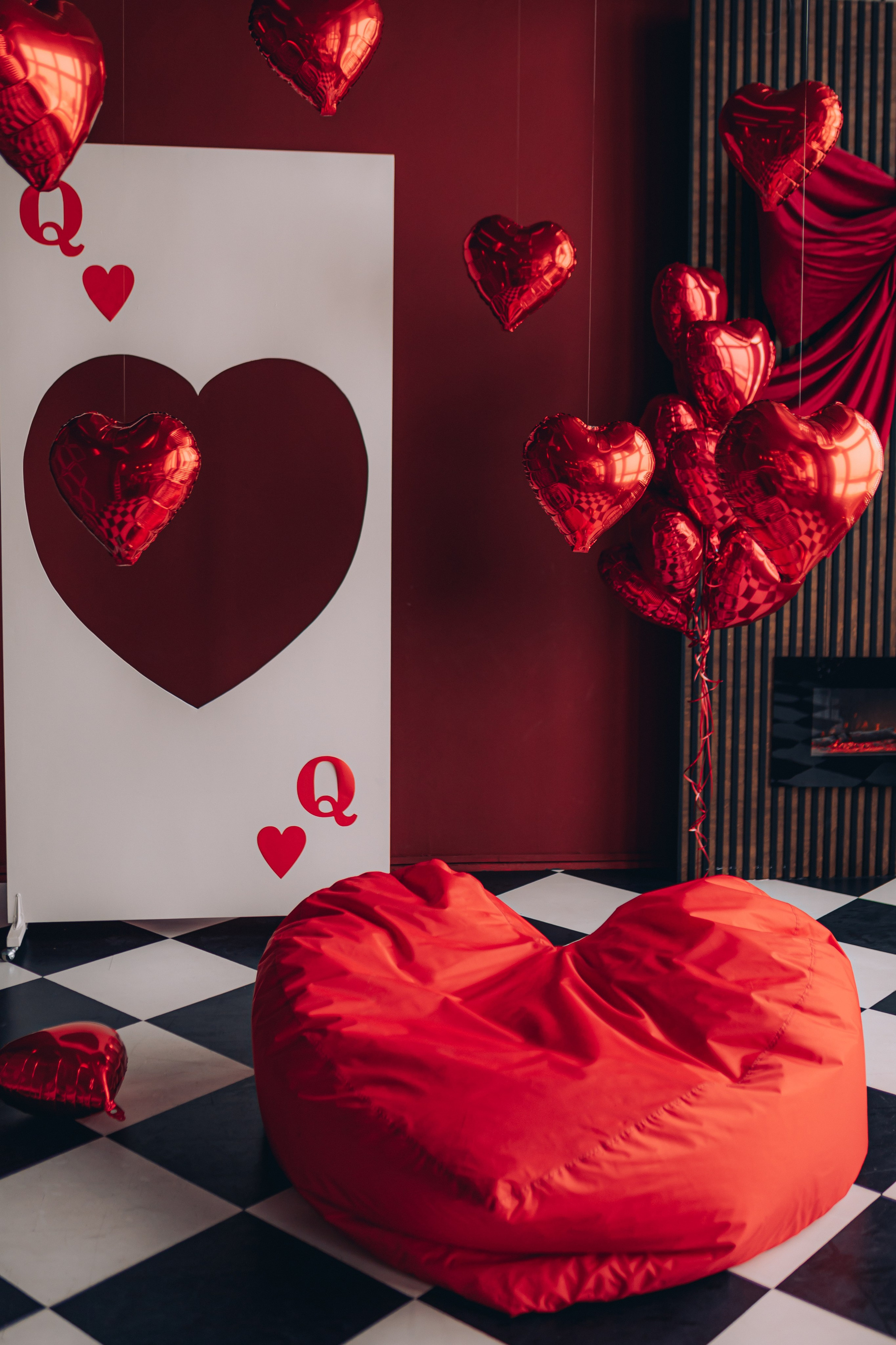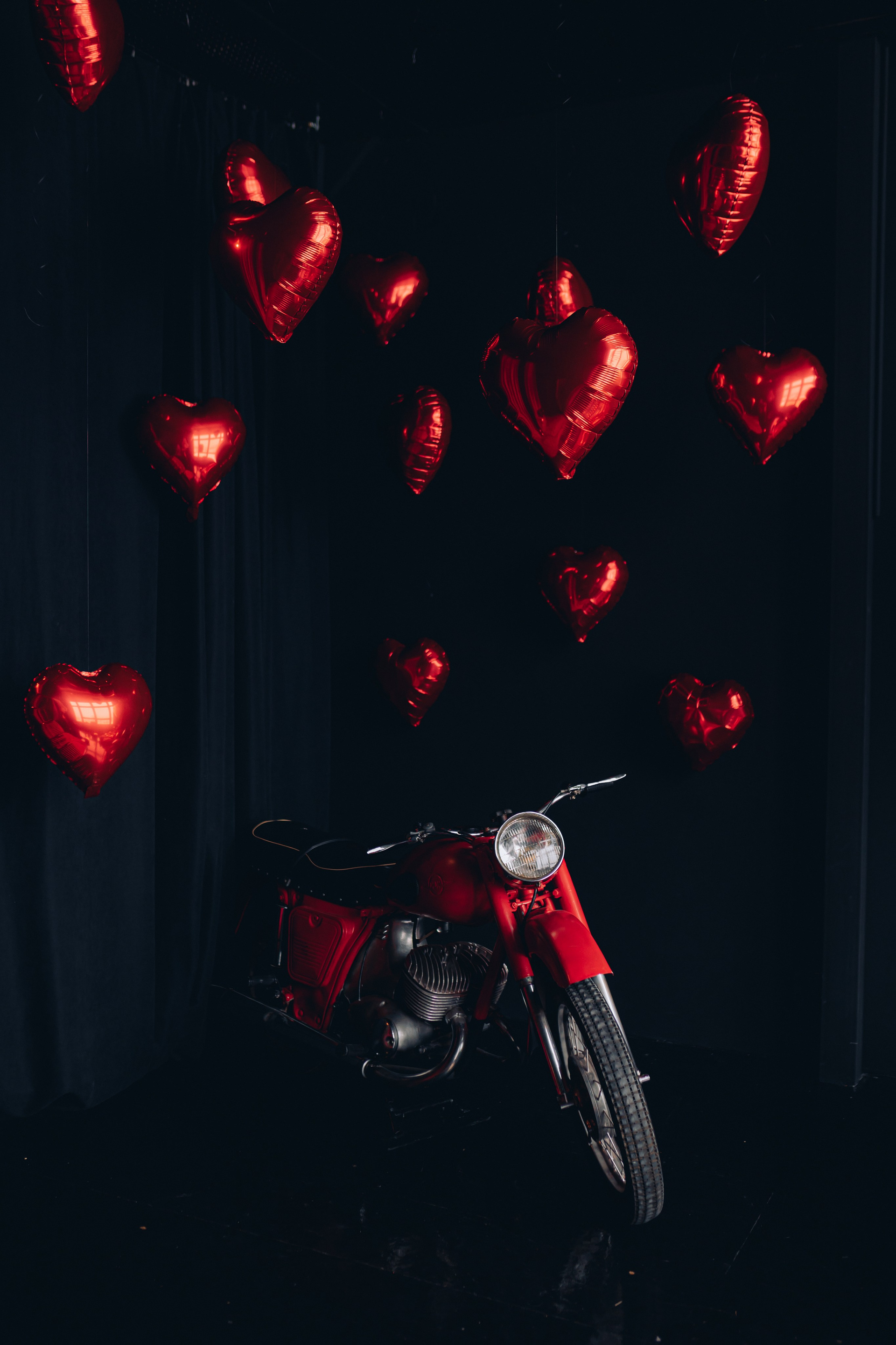 красный мотоцикл, огромная роскошная люстра со свечами (можно садиться), две стильные люстры (можно крепить в любом месте и на разной высоте), дизайнерский диван, арка, черные и красные шторы