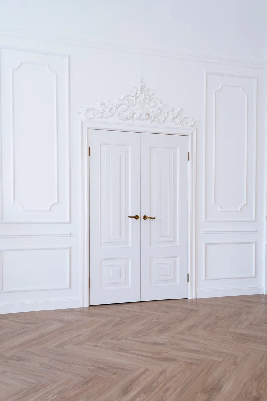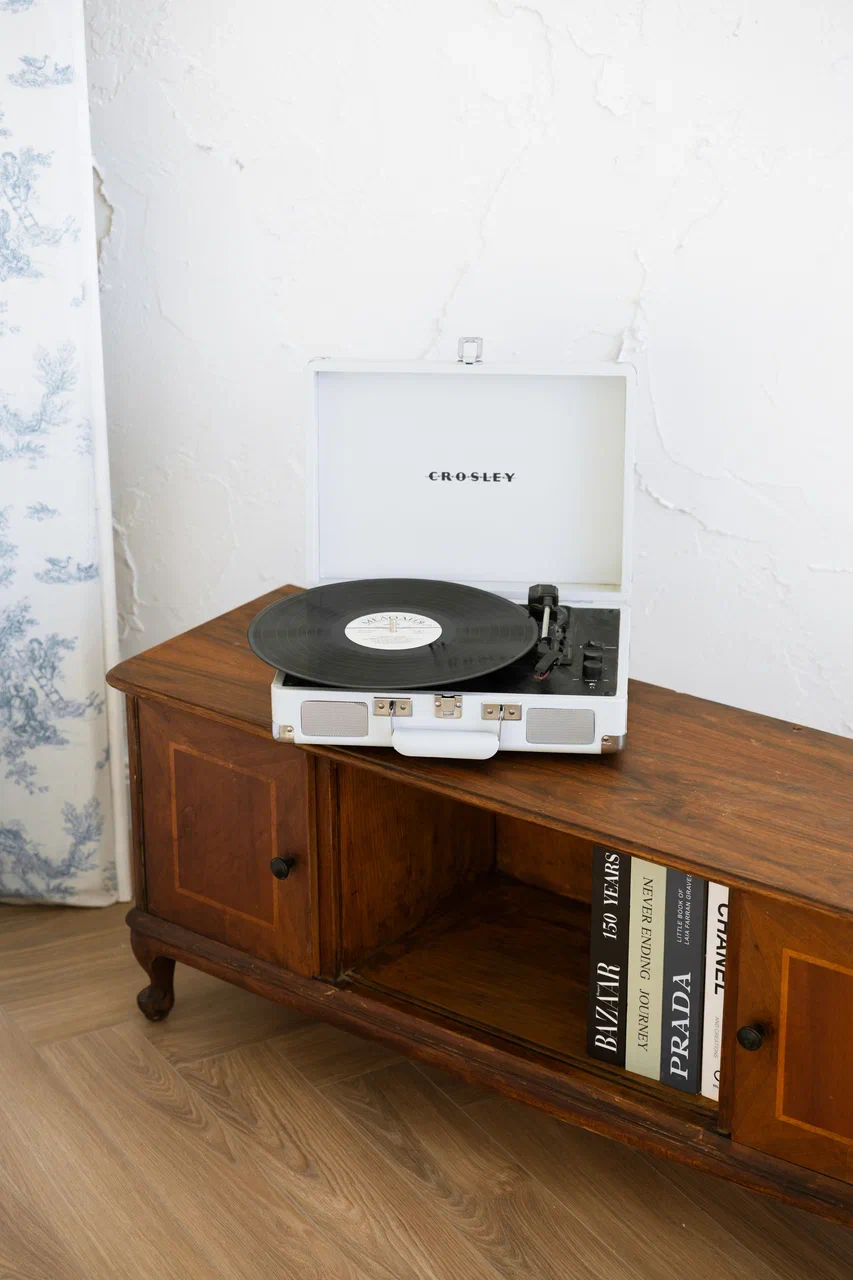 Большой зал 70 кв. м. на солнечной стороне, белая циклорама и светло-серые блэкаут шторы, красивые распашные двери и антикварная мебель, умная колонка