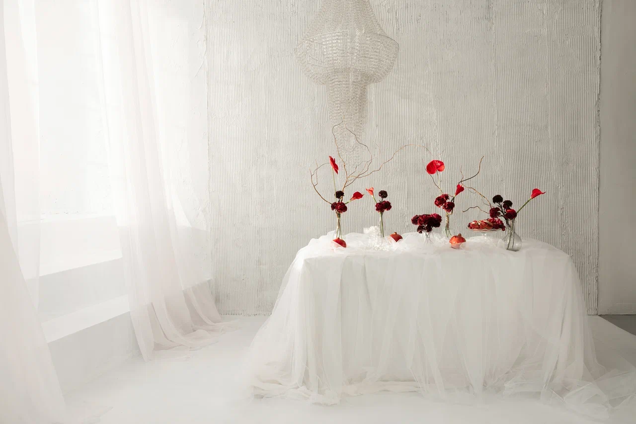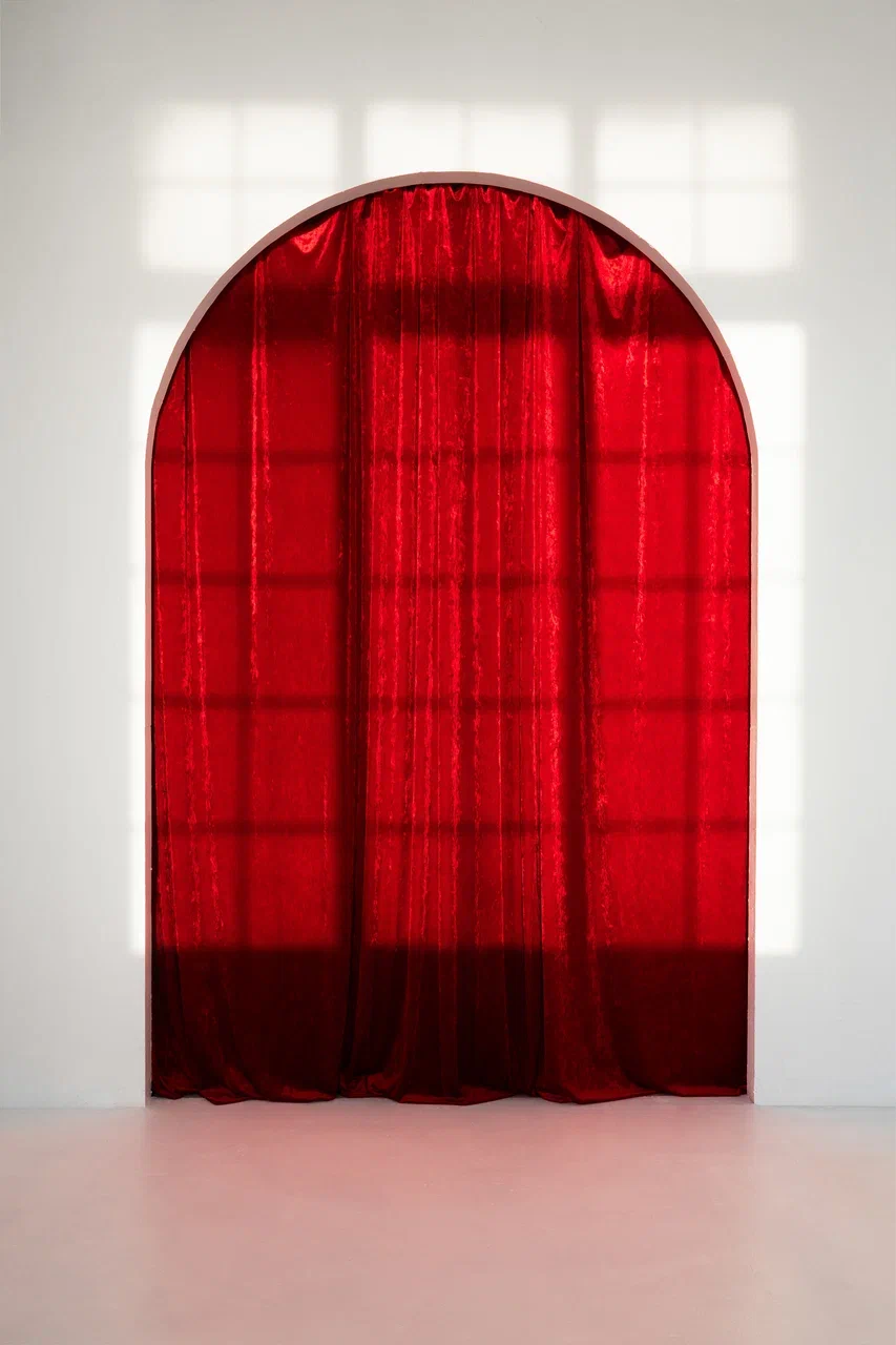 — красный бархатный фон в арке