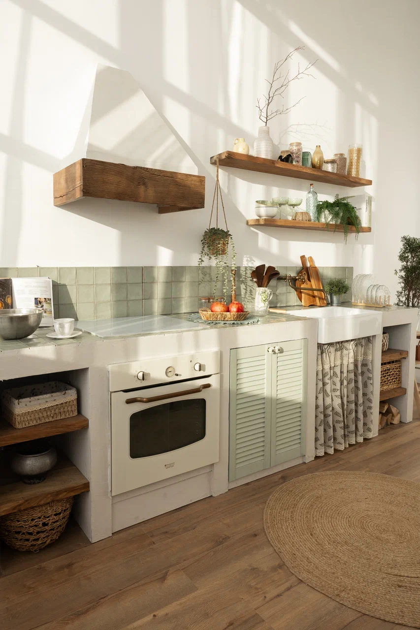 Кухня со множеством деталей, рабочей варочной поверхностью и духовкой