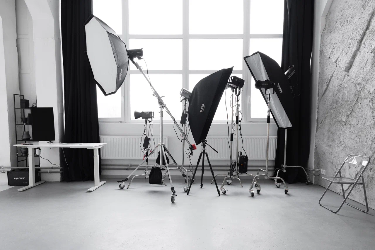 В стоимость аренды студии входит 2 источника света. В наличии Godox DP600 III (3 шт), Godox QT1200IIM, APUTURE AMARAN 300С RGB FULL-COLOR 300W (2 шт), Godox SL150II студийный (4 шт), Godox SL60W студийный (2 шт), Оптическая насадка с масками Гобо, Yongnuo YN-600 L LED 5500K, Портретная тарелка, Октобокс 90 см Софтобоксы 120 на 80 и 180 на 40 см.