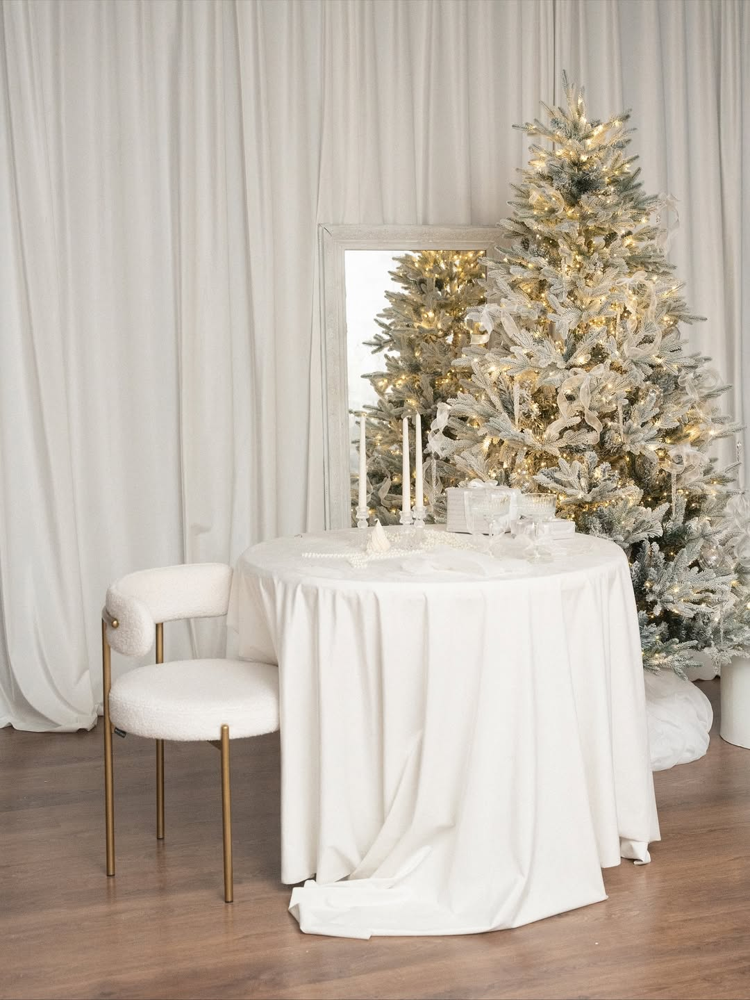 Роскошная белоснежная ель и элегантный стол и атмосфера гламурной вечеринки. Это ваша сцена для шикарных, дерзких и sensual образов. Сюда приходят за фотографиями для инстаграма, которые соберут все лайки! Идеально для парных съемок и фотосессий для уверенных в себе девушек.