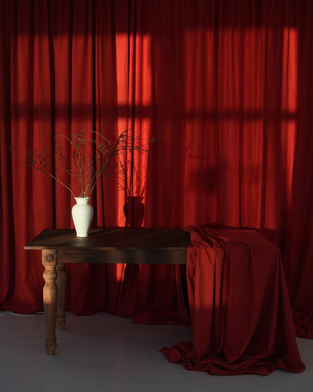 Доступна плотная красная ткань на стойке