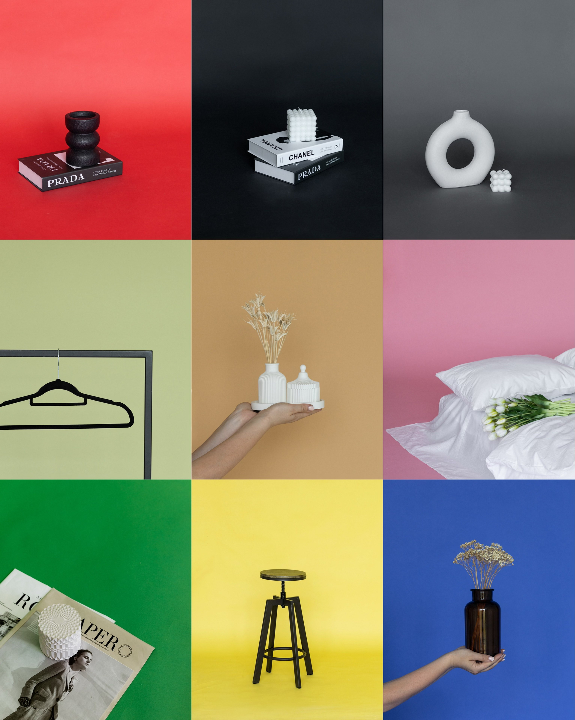 В зале помимо интерьера находятся бумажные фоны (9 цветов).