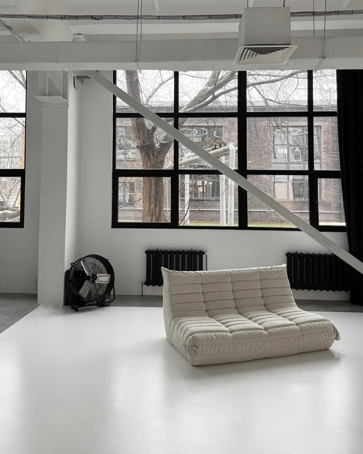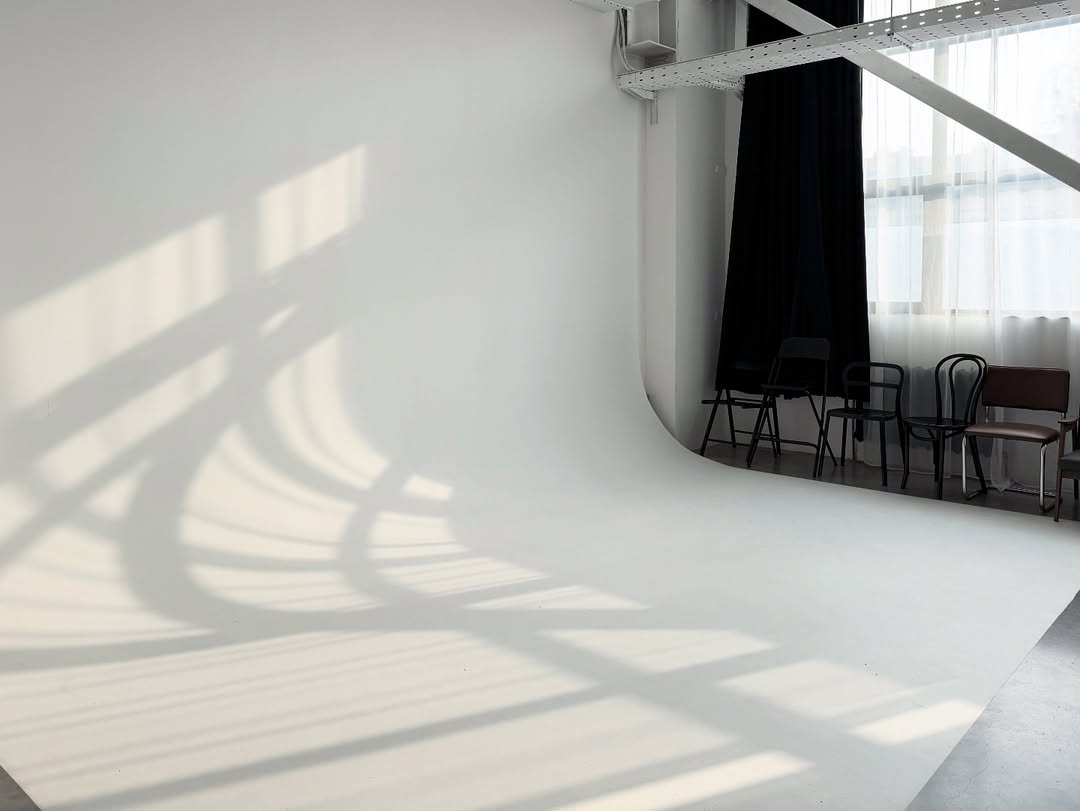 Зал для сьемок с натуральным светом, модельных тестов, снепов, индивидуальных и портретных съемок, а также небольших сьемок для брендов.