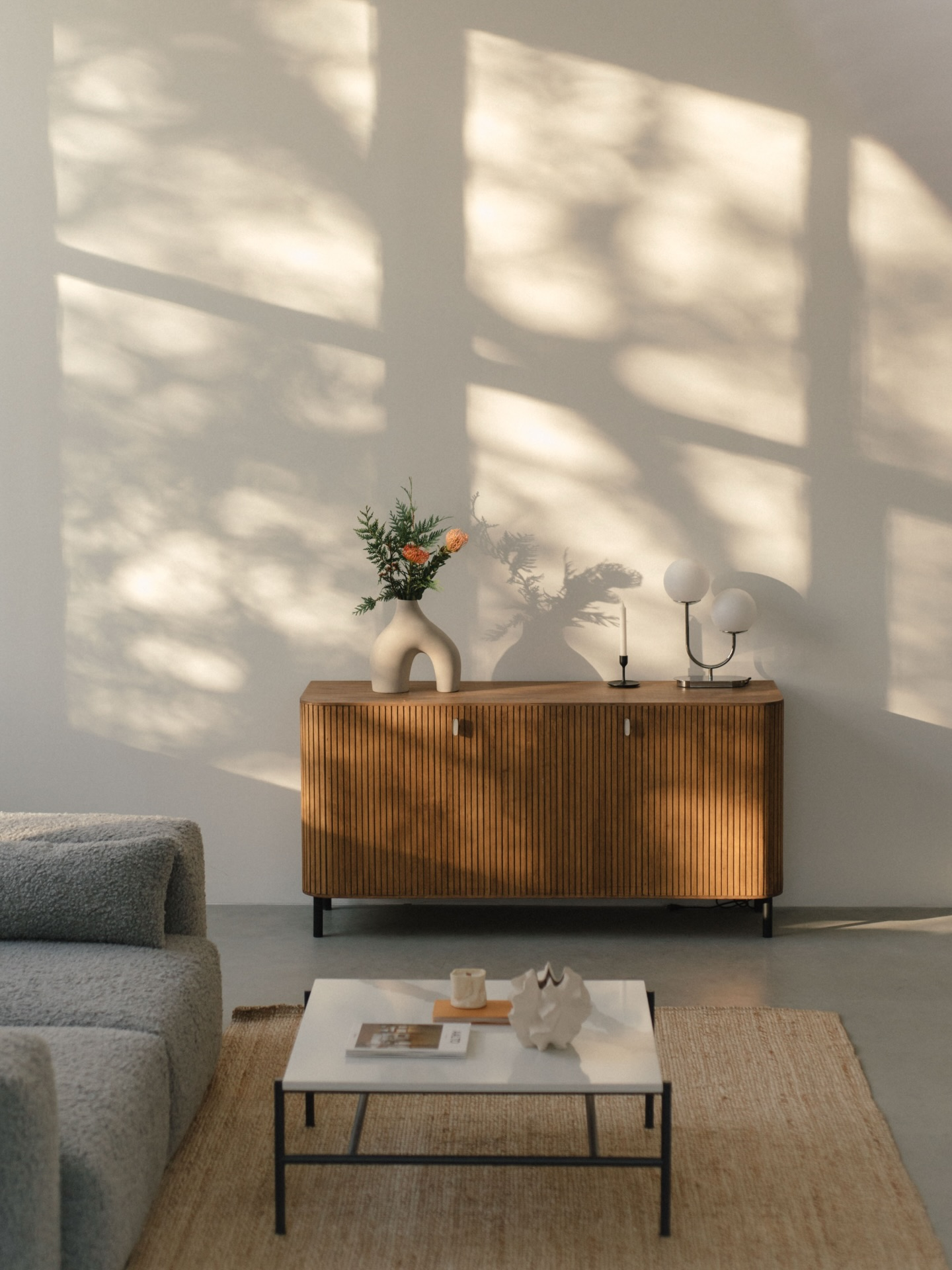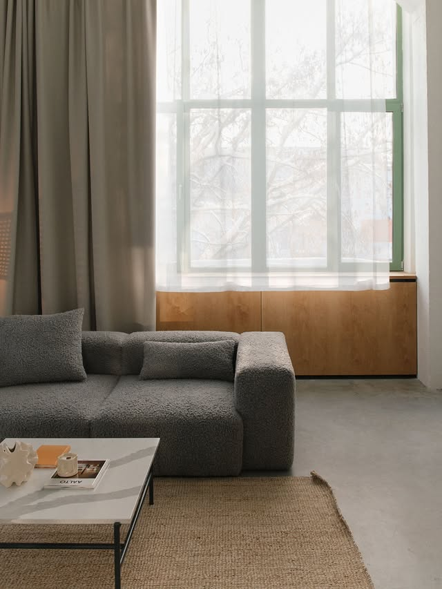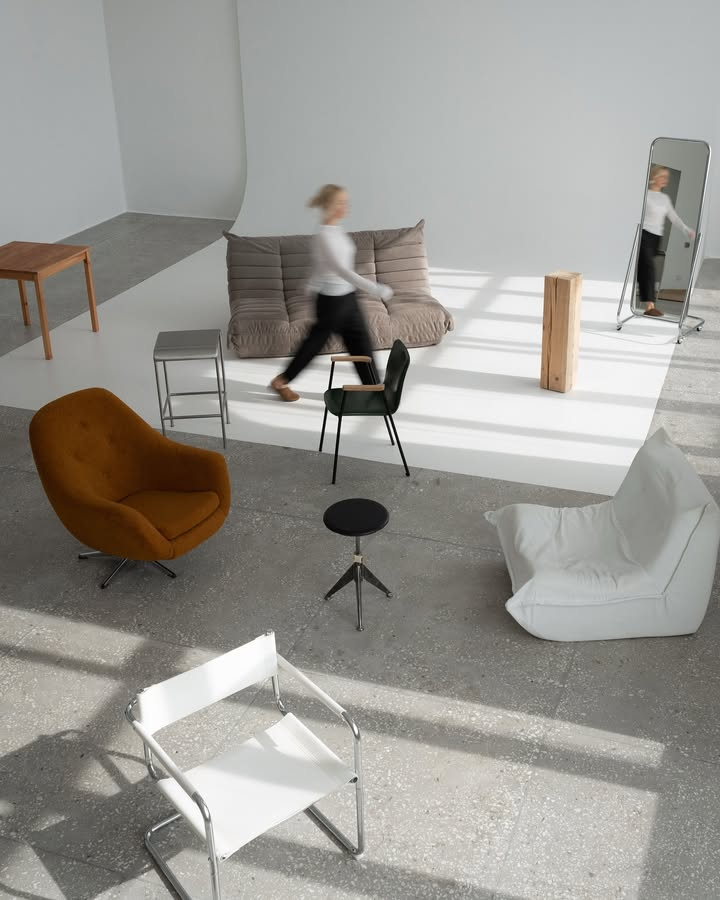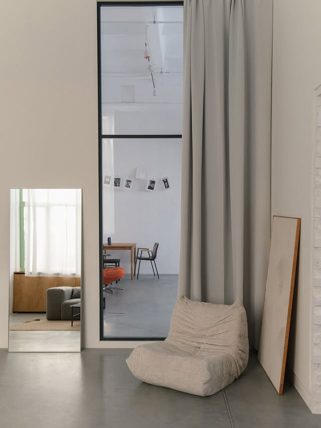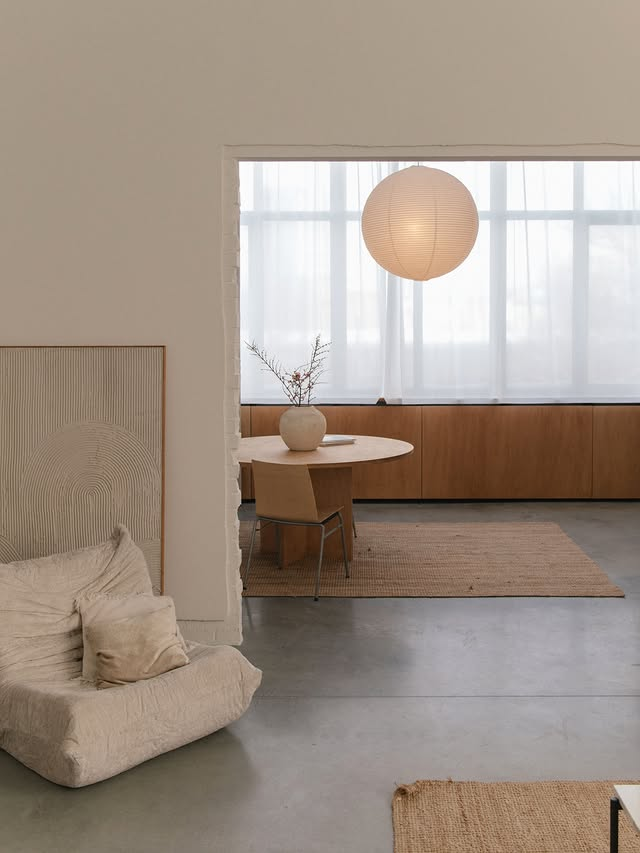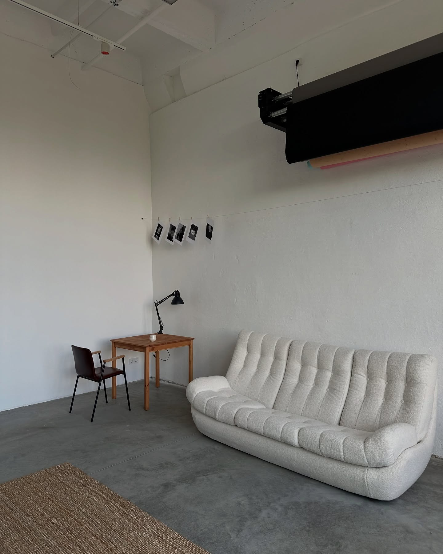 Это минималистичный зал с бумажными фонами, большими окнами на восточной стороне и стильной мебелью, которая с легкостью передвигается по всему залу.