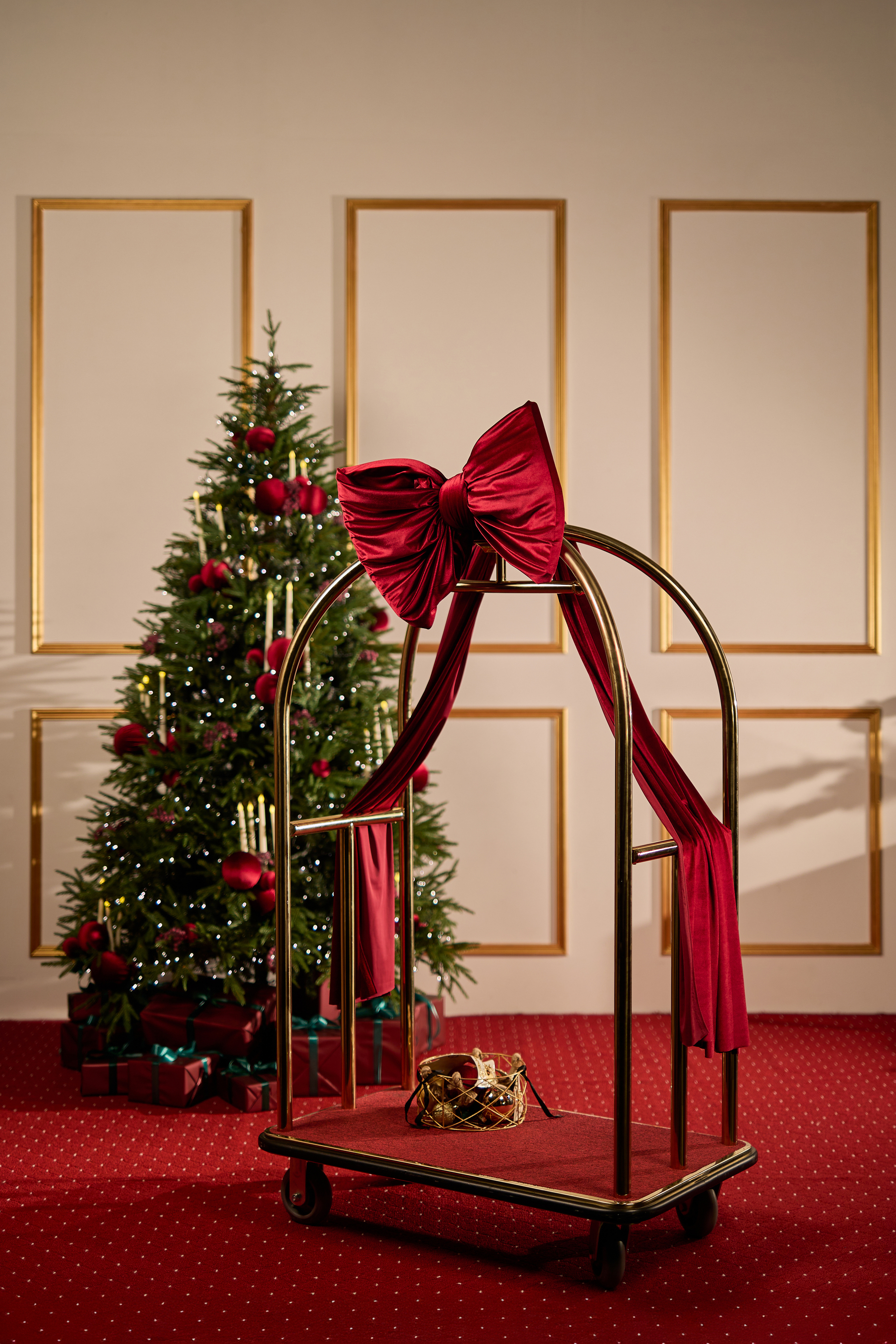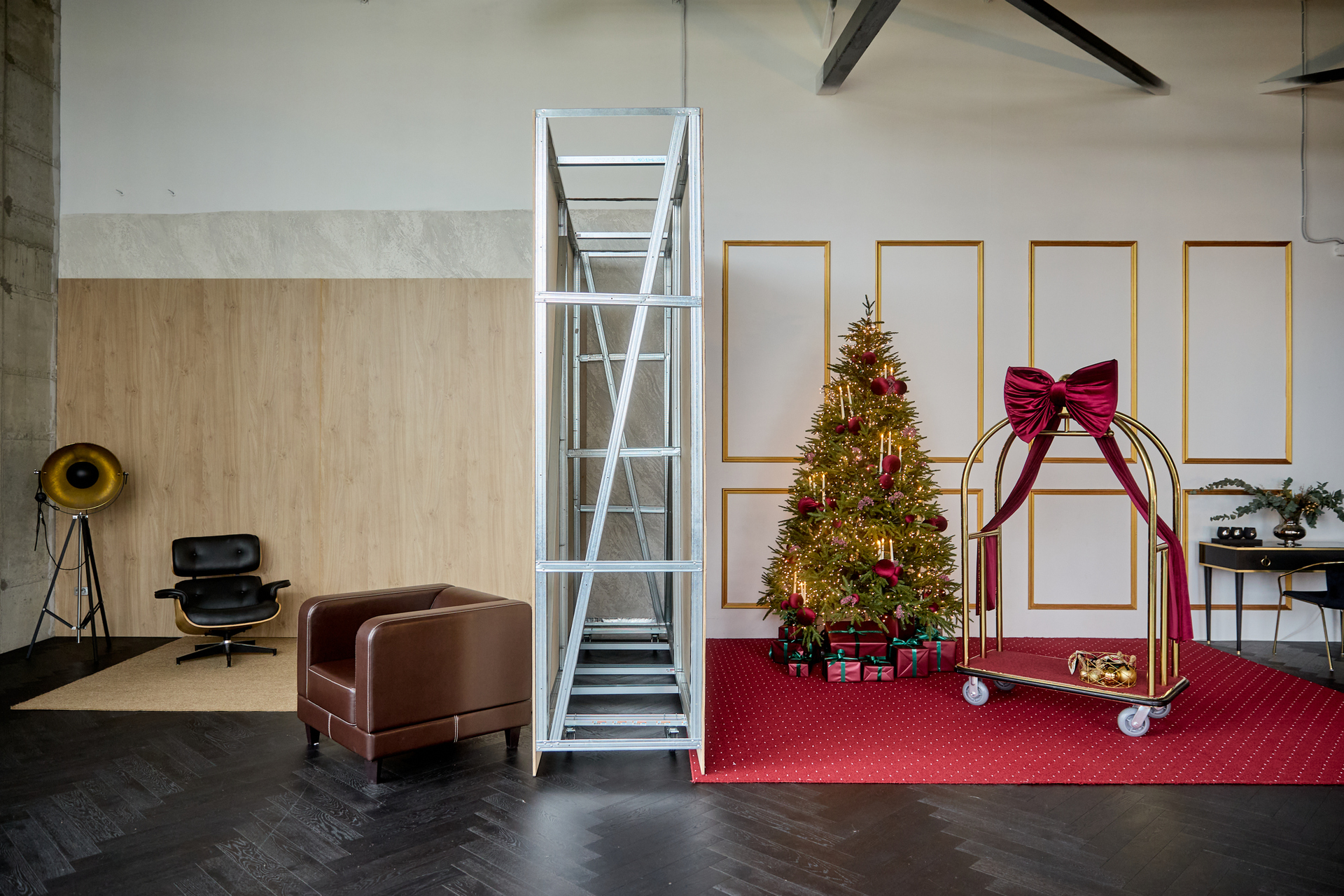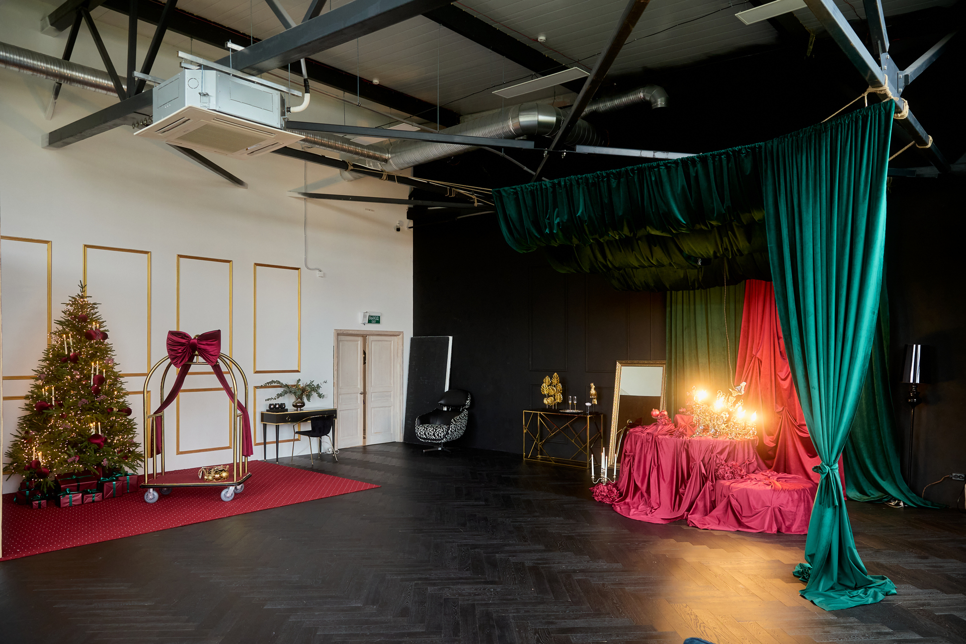 — Передвигать елку, стол и шторы в новогодней зоне категорически запрещено! Демонтаж новогоднего декора обсуждаем только при бронировании целого съемочного дня и более. Остальная мебель в зале передвигается только приподнимая над полом.