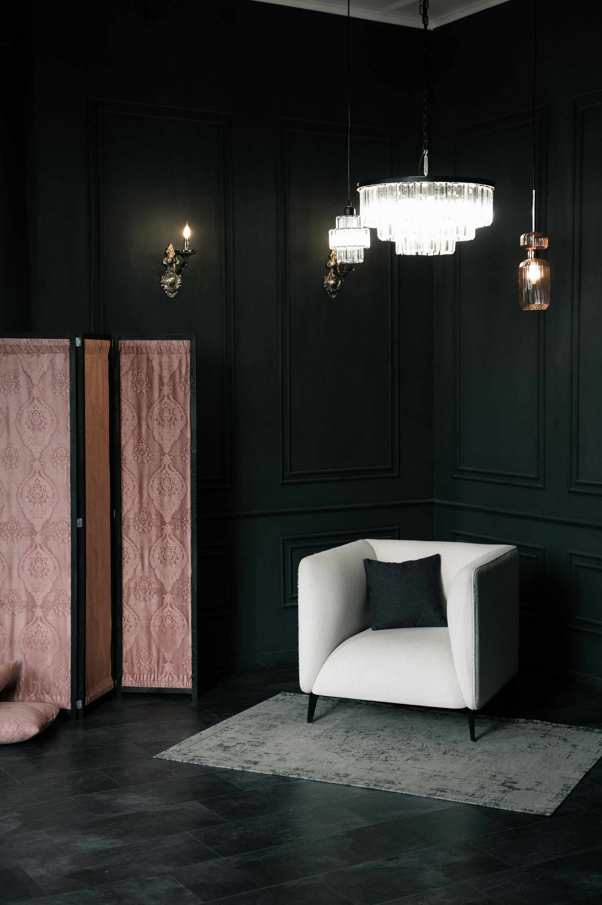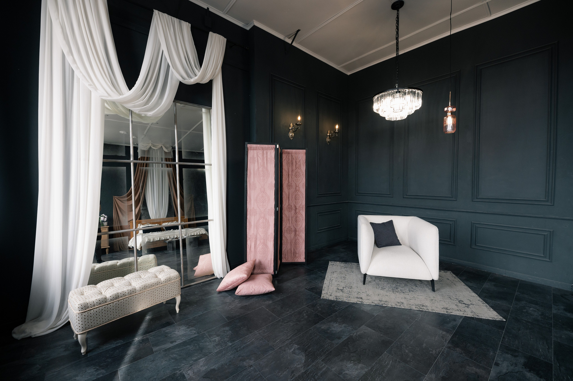 Благородный зал в темных тонах, таинственный, элегантный и роскошный!