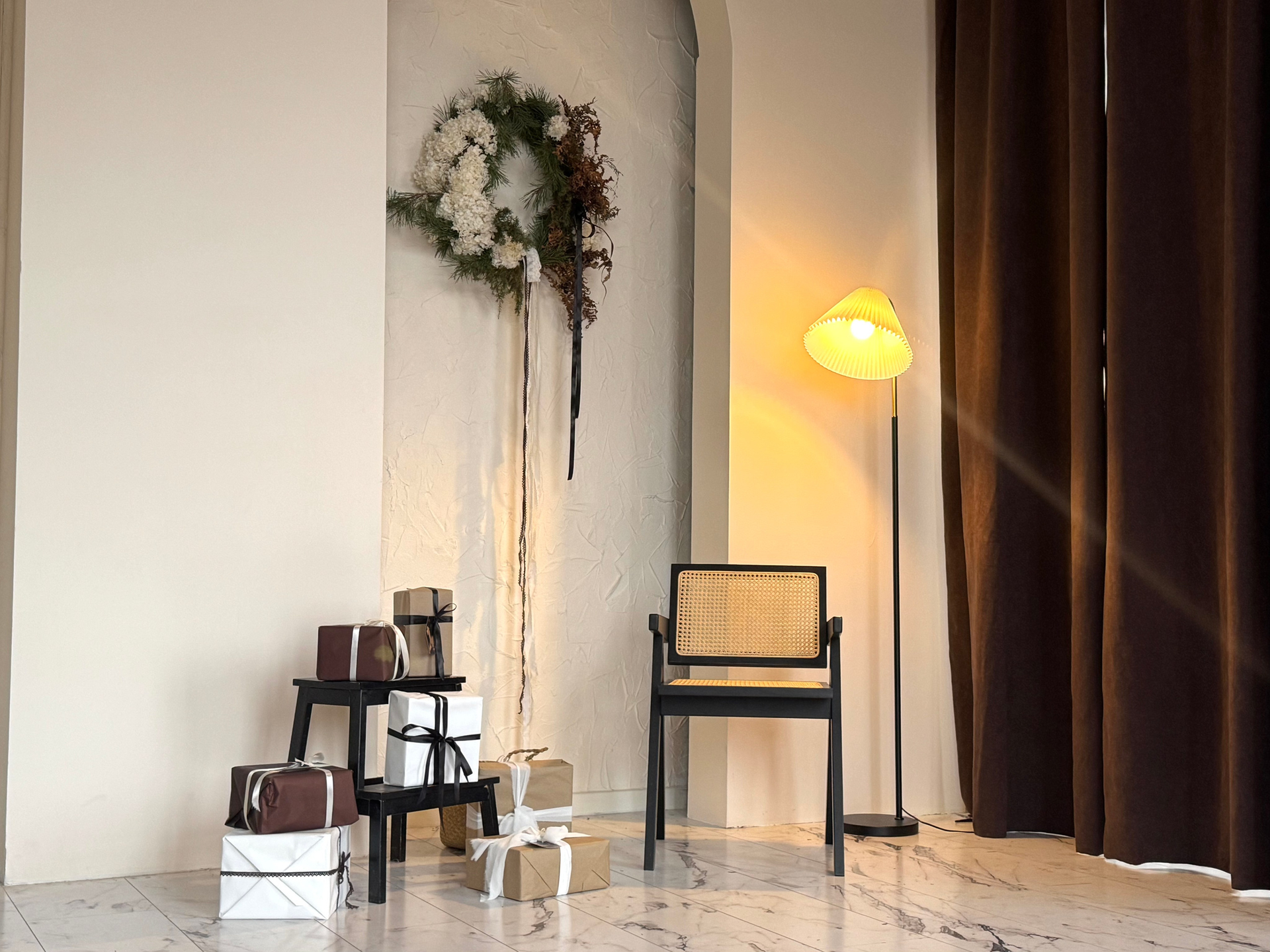 Тёплая атмосфера Нового года с природными акцентами и ноткой скандинавского уюта.