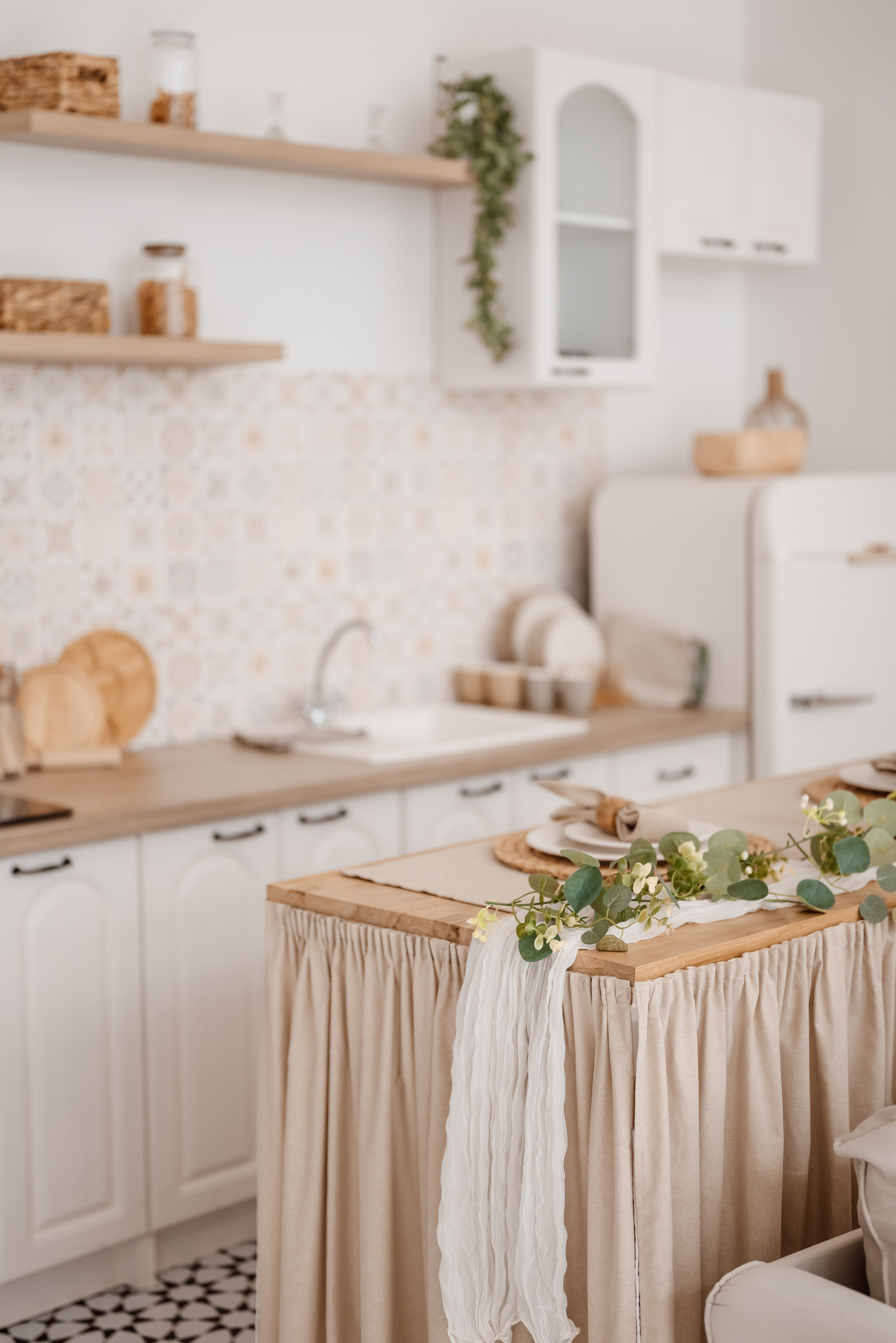 - Светлый зал с кухней и детской зоной