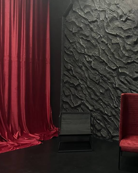 - Темный зал с различными фактурами стен