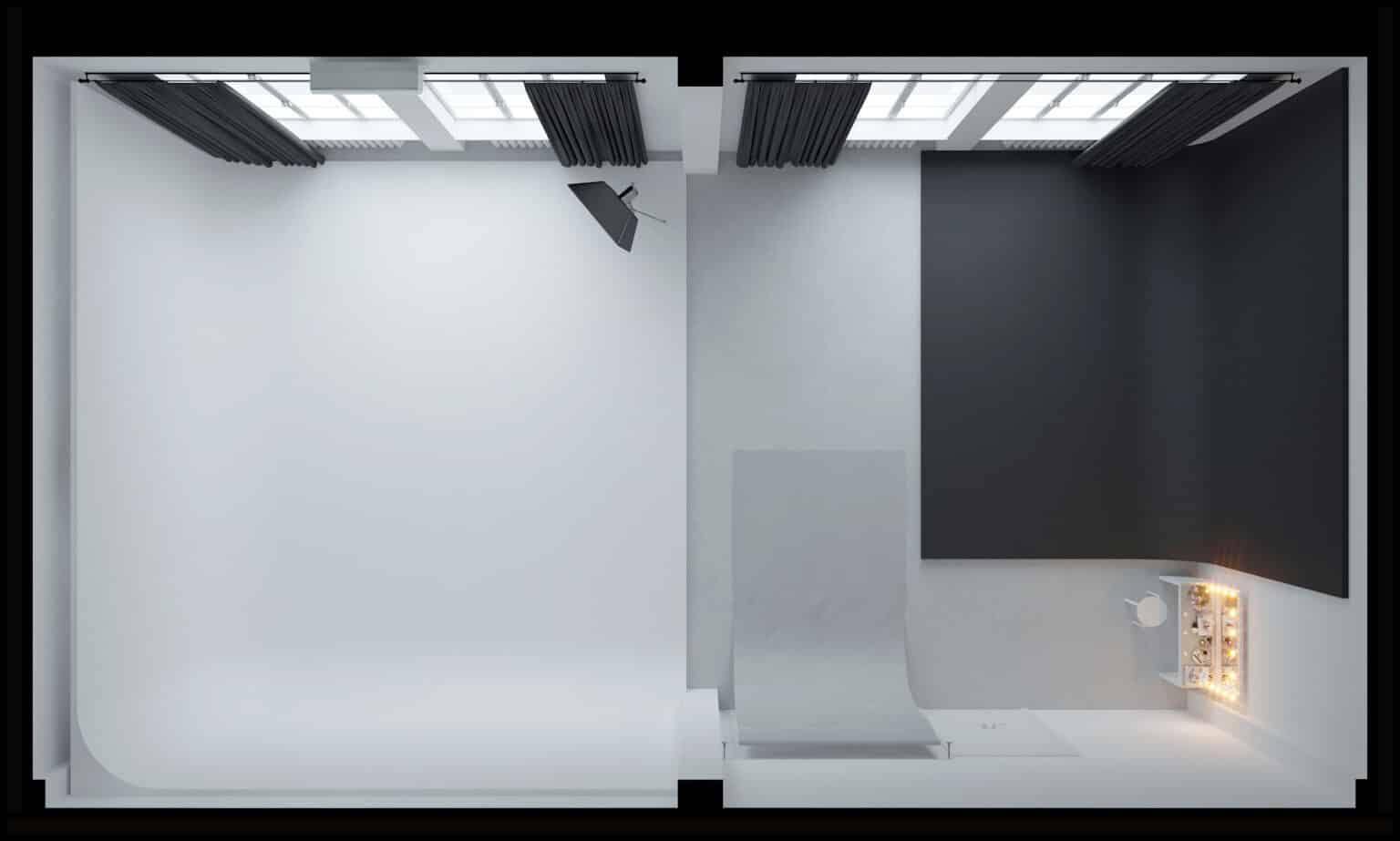 Если вам нужно сделать простую съемку каталога, предметную съемку, видео на YouTube, говорящую голову или просто ролик на чистом фоне — это идеальное пространство.