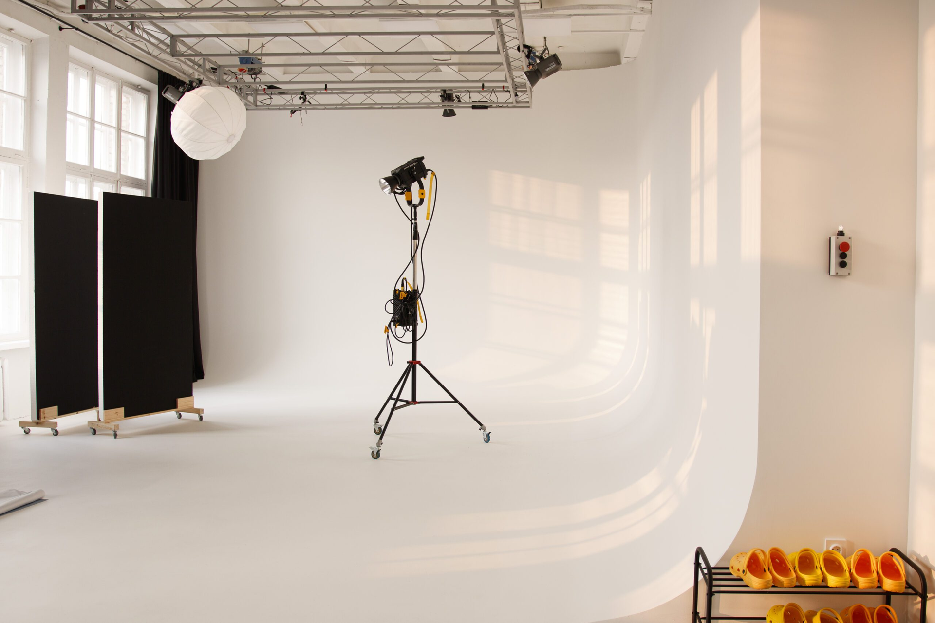 — На циклораме и фонах необходимо находится босиком или в сменной чистой обуви. Если вам необходима обувь для кадра, заблаговременно заклеивайте подошву бумажным скотчем. Используйте такую обувь только для циклорамы.