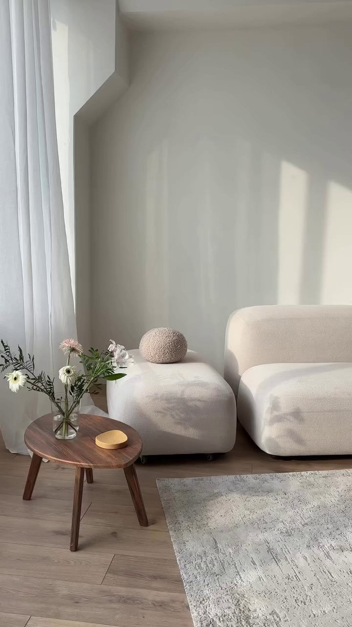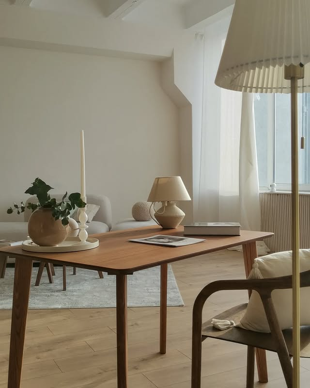 Выполнен зал № 2 в теплых оттенках: пол бетон, светлые стены, панорамные окна, вся мебель на колесиках, есть блэкаут шторы.