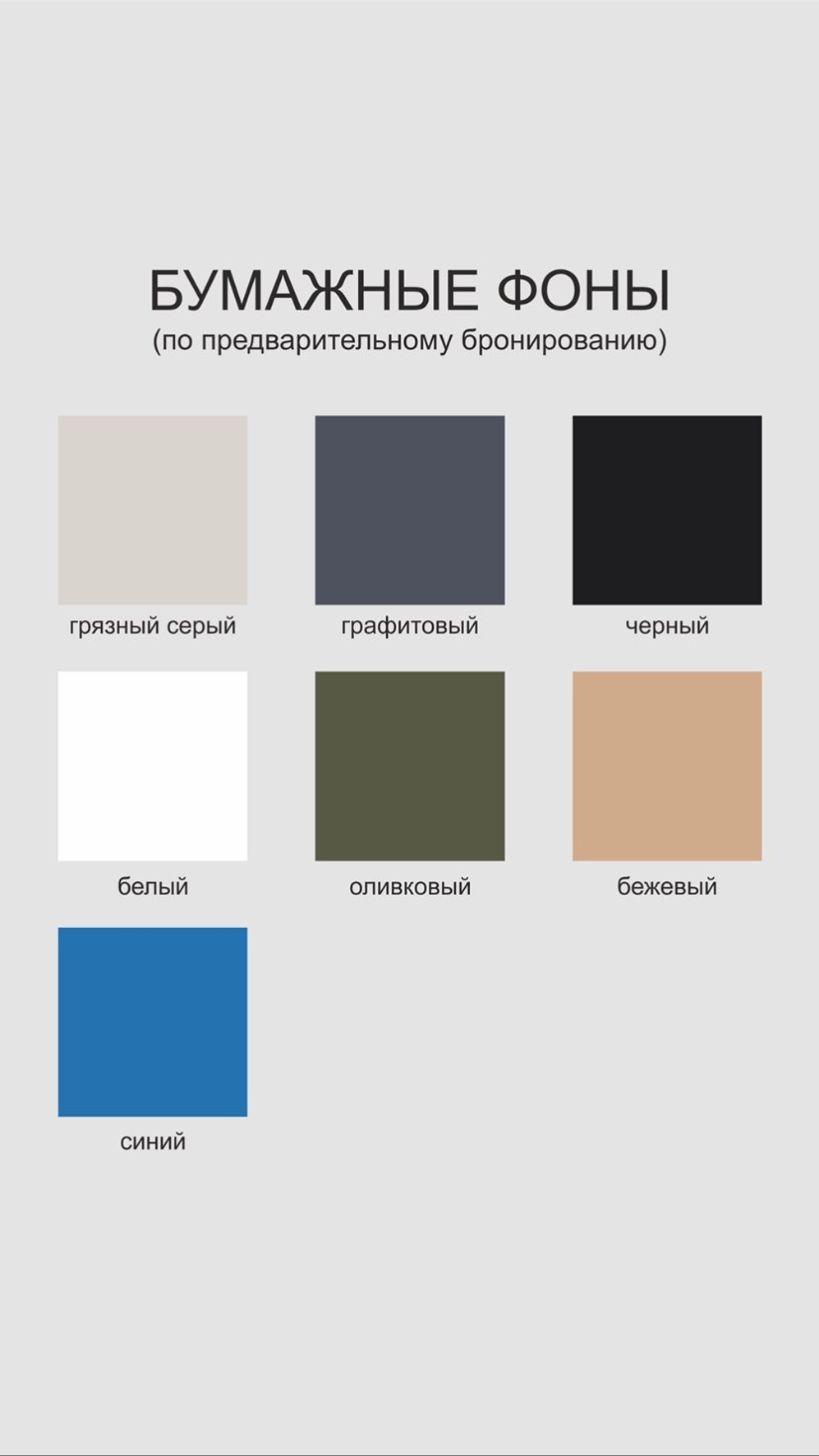 Помимо интерьера студии вы можете воспользоваться студийными фонами.