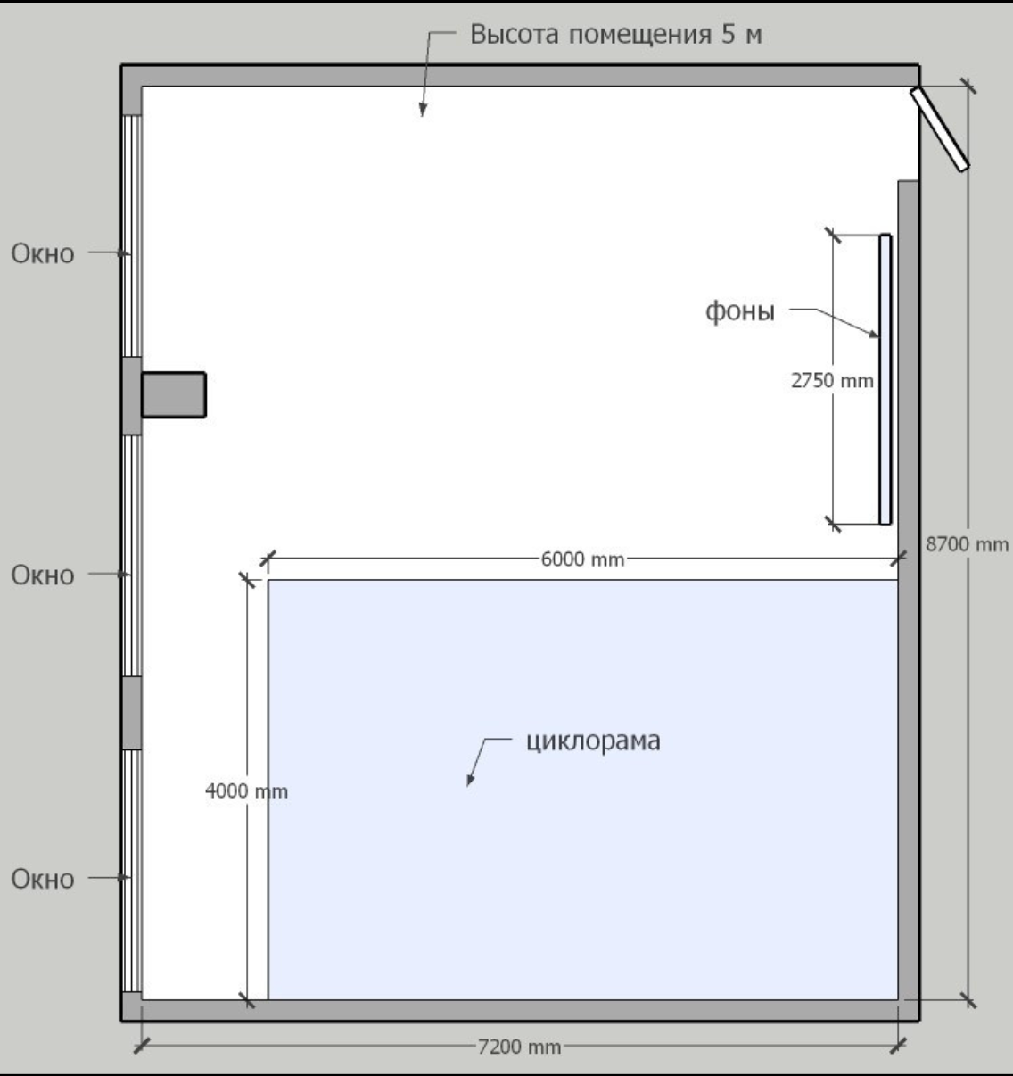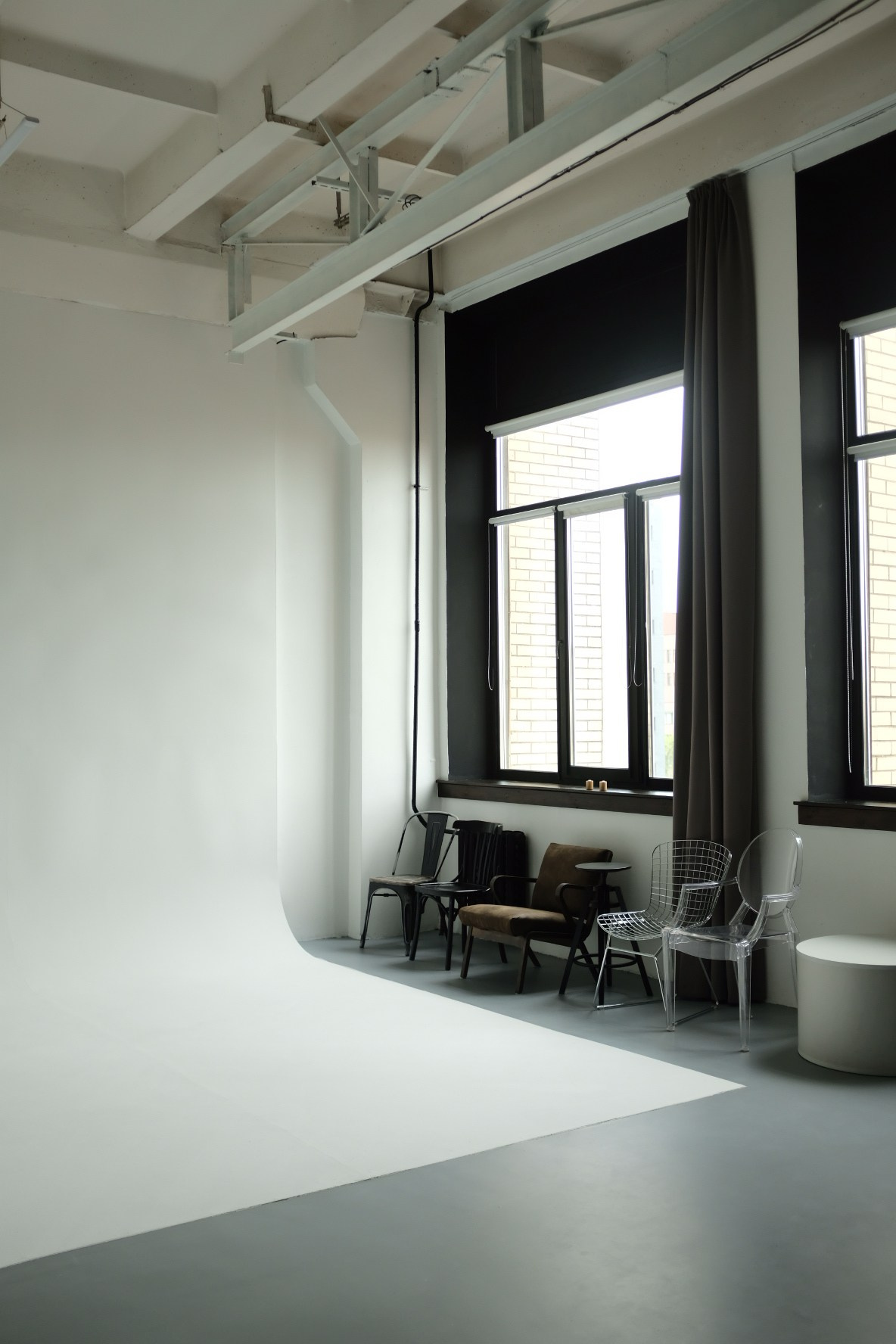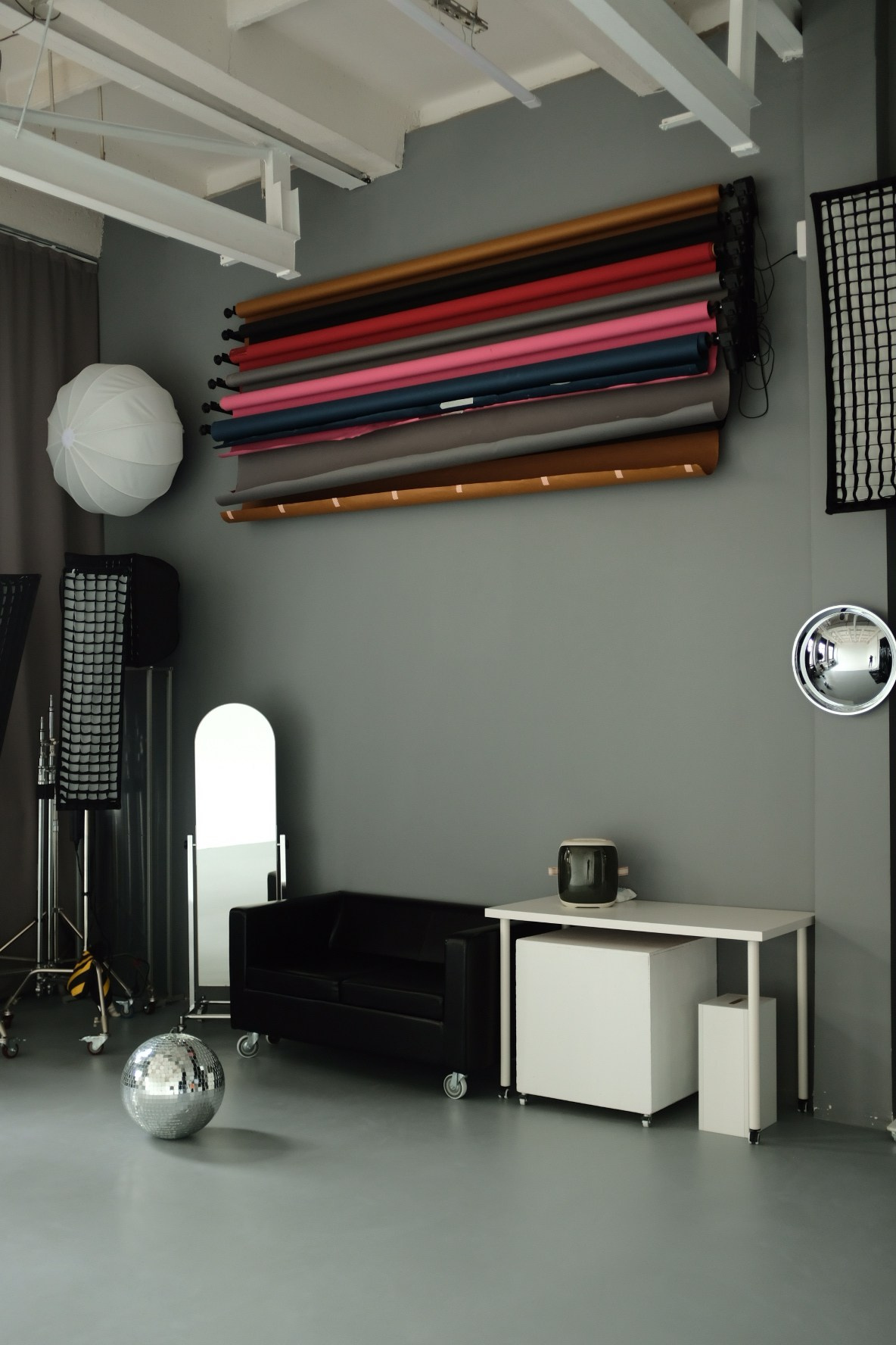 Уютная студия в центре города. Зал с циклорамой 6×4 метра, цветными фонами, с хорошим естественным освещением и шторами blackout. Огромный выбор светового оборудования, лазер, проектор, дым-машина, генератор снега, беговая дорожка и дополнительные аксессуары для аренды во время ваших съёмок, гримёрка и аренда гардероба.