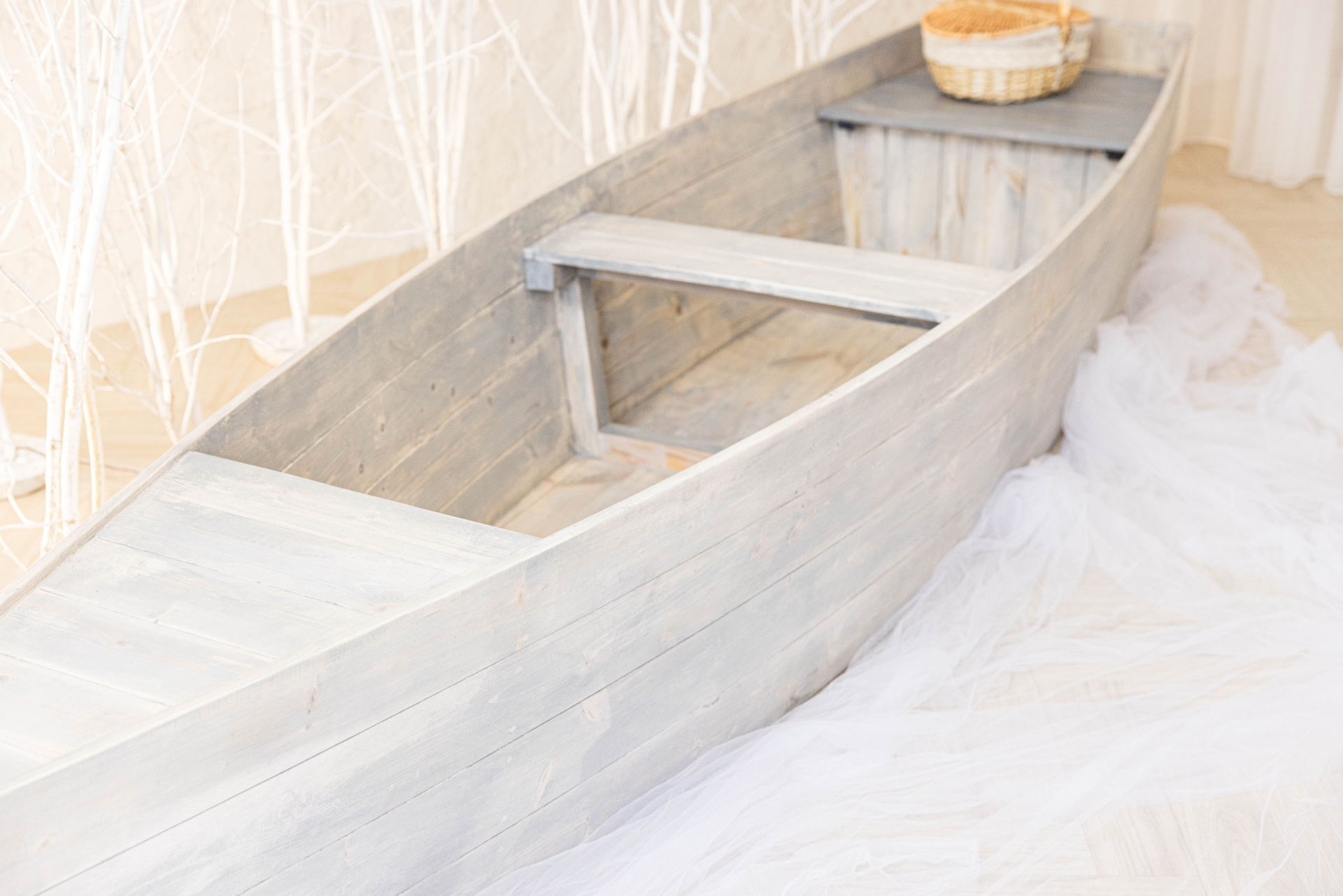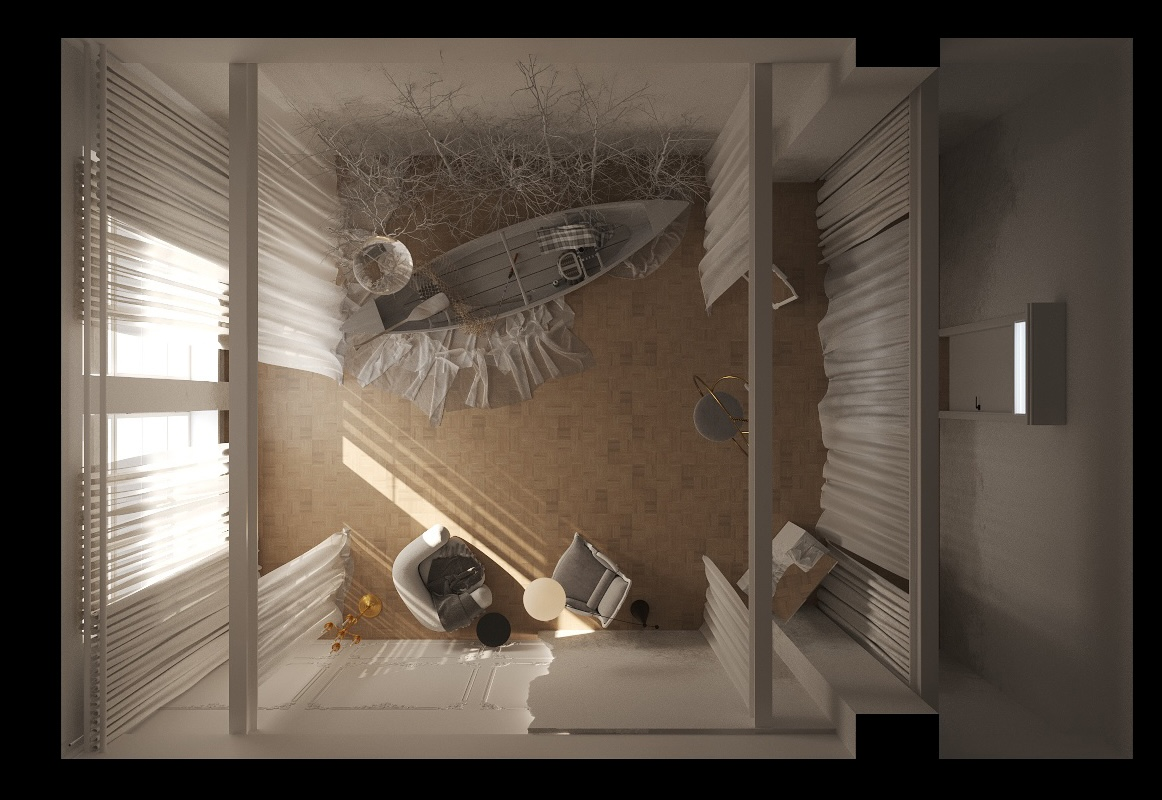 Минималистичный зал. Светлый. Чистый. Воздушный. С лодкой.