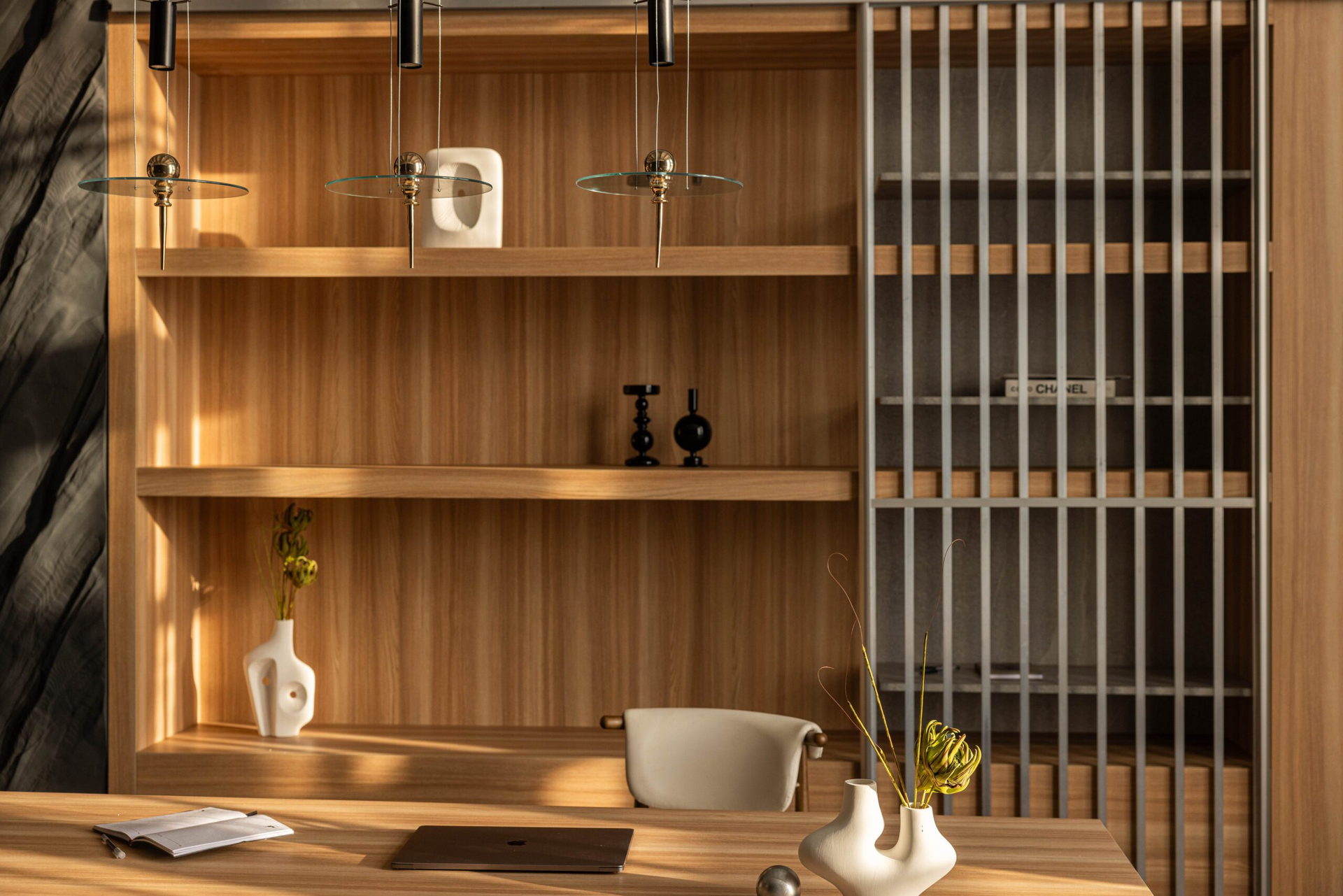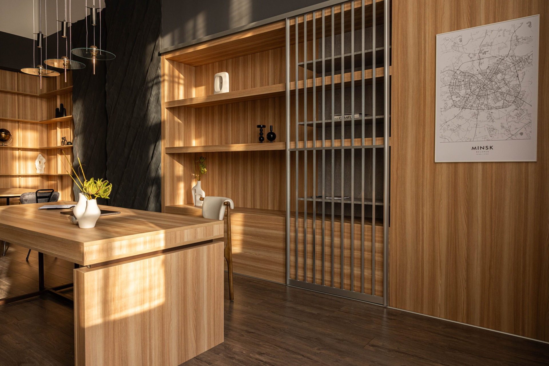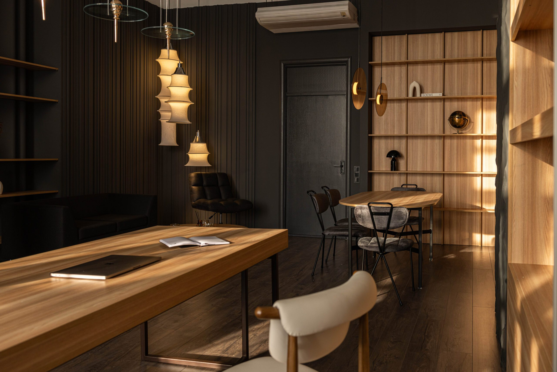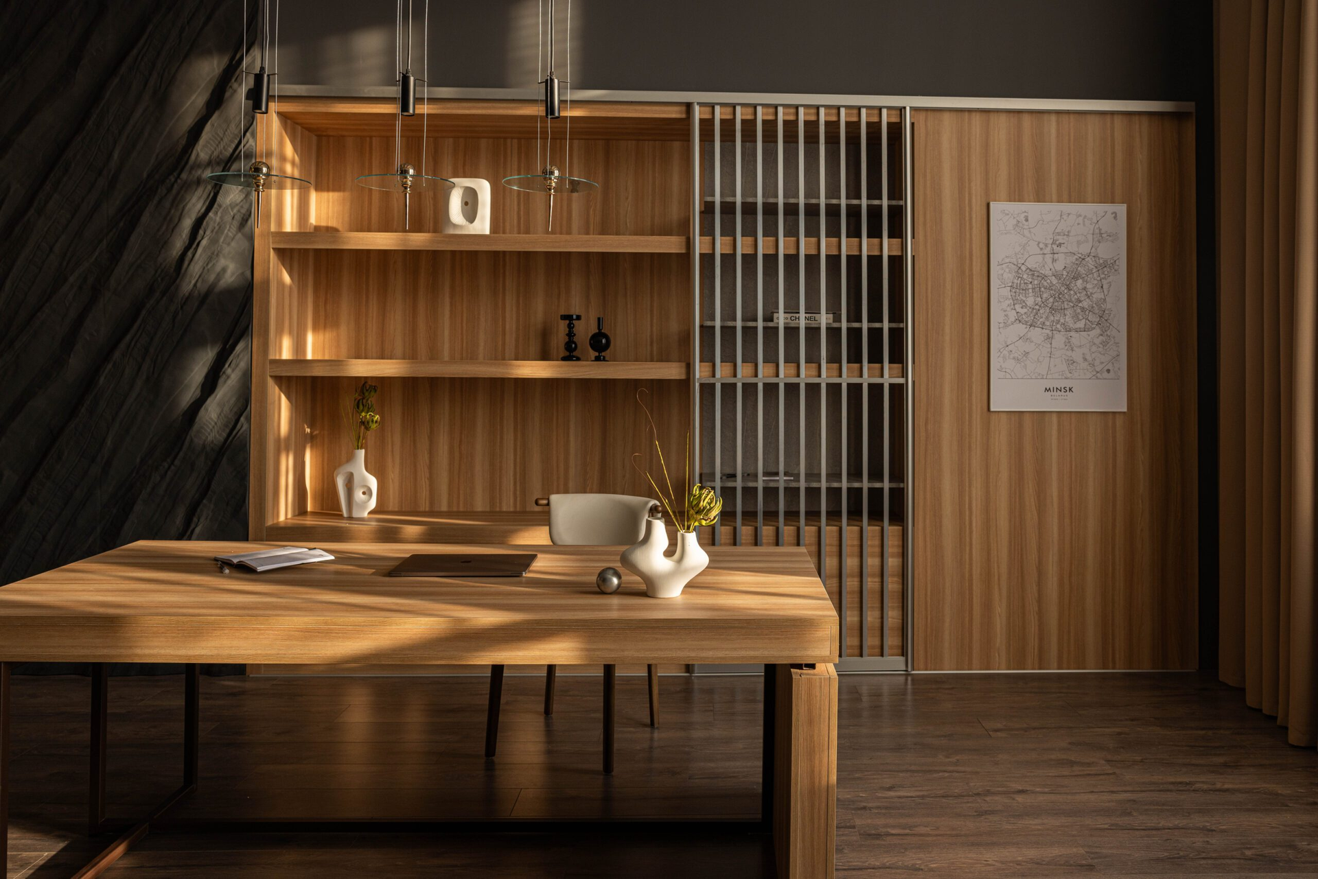 Молибден — это кабинет с характером. Тёмный, собранный, но тёплый по ощущениям.