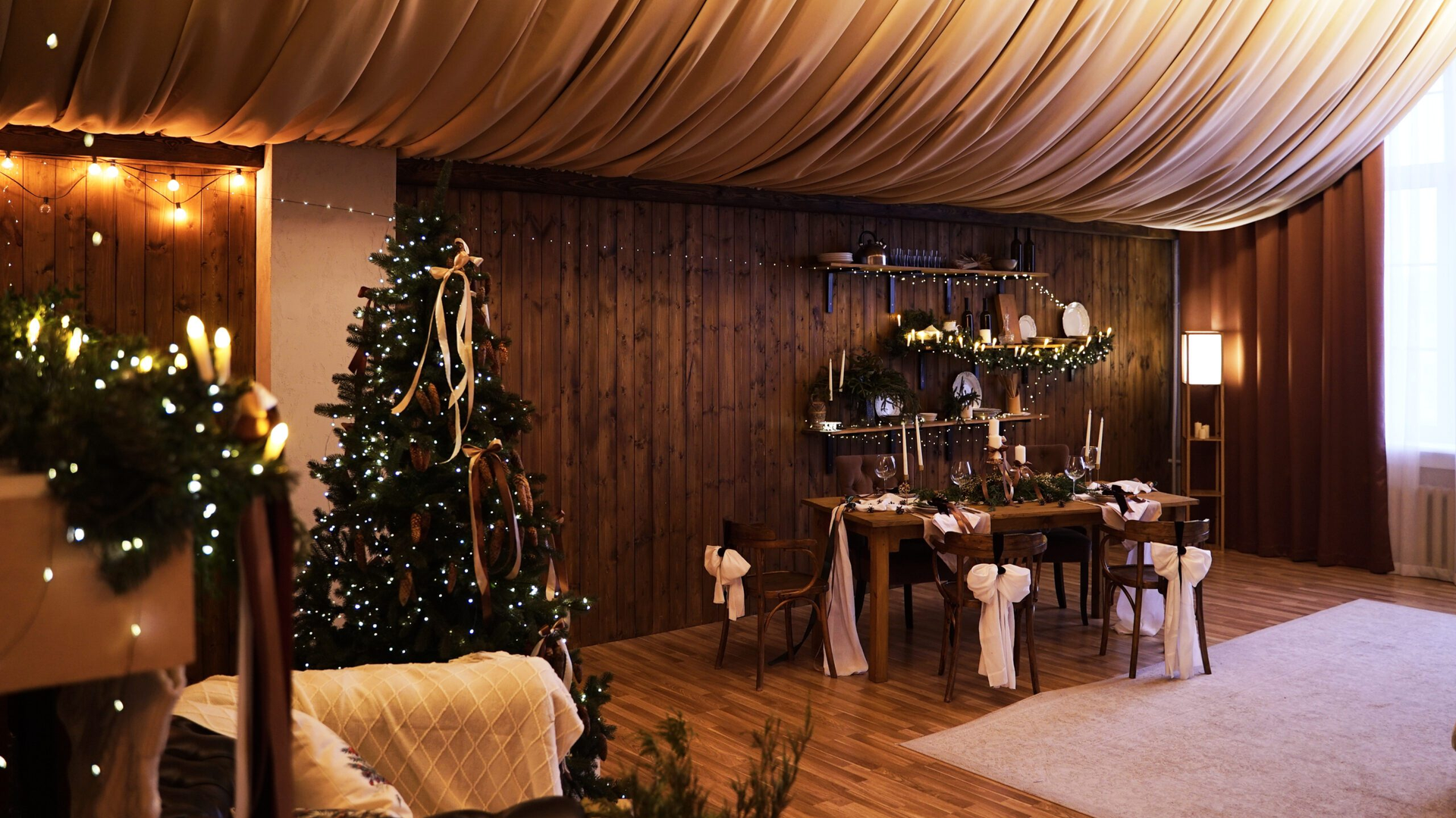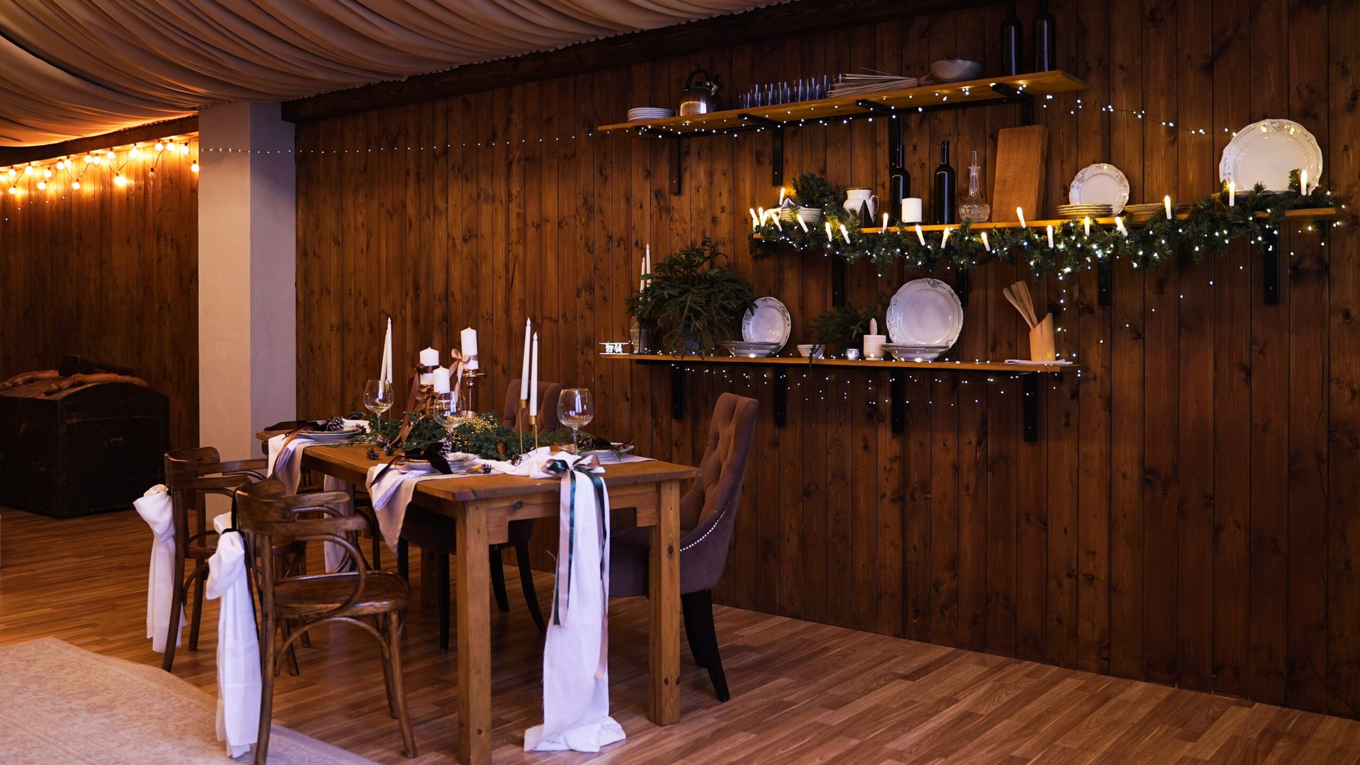 Зал Скандий — самый уютный зал нашей фотостудии, интерьер горного шале!