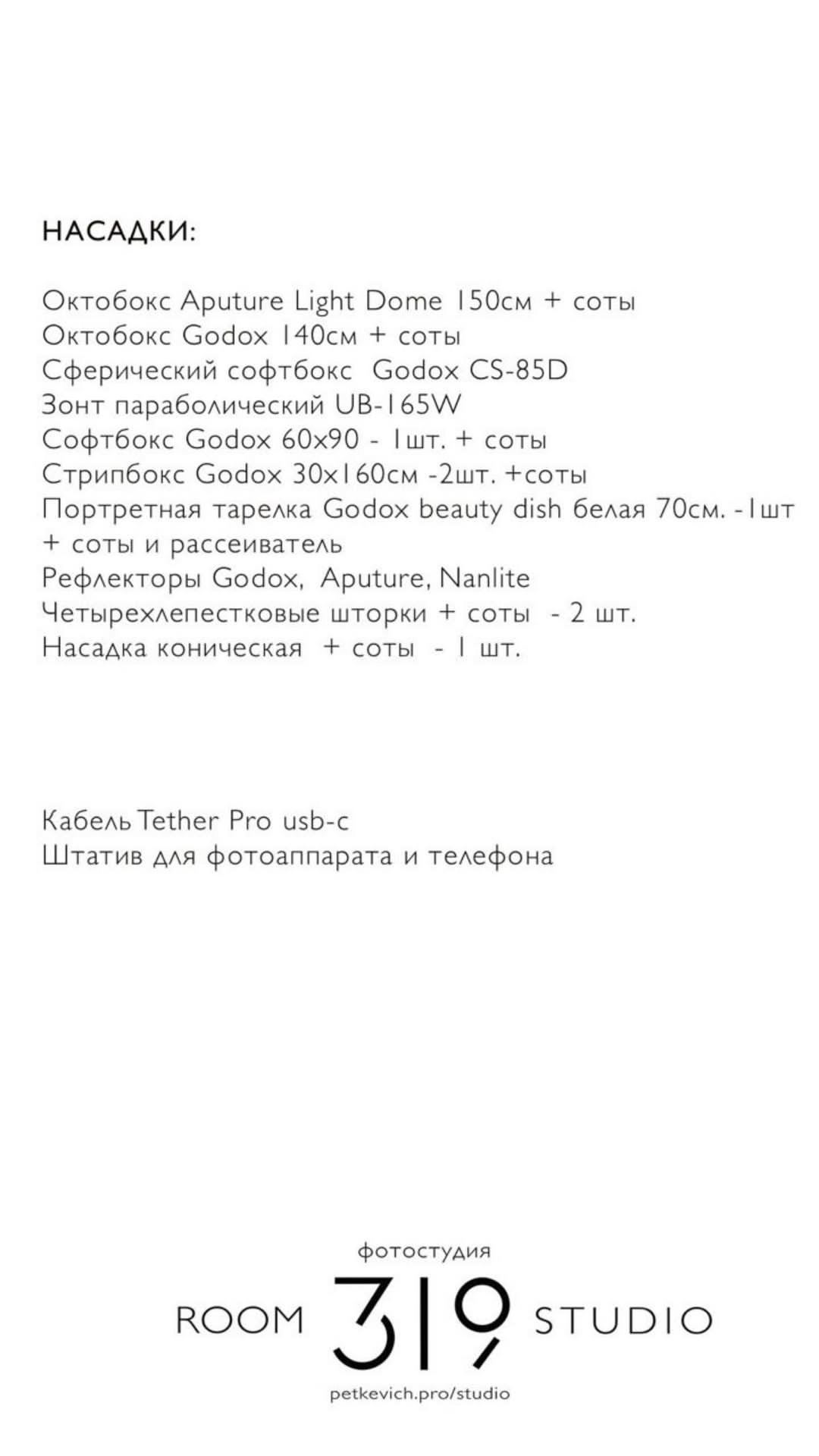 Ниже я собрала информацию по студии, чтобы можно было быстро понять, подходит ли она под вашу съёмку.