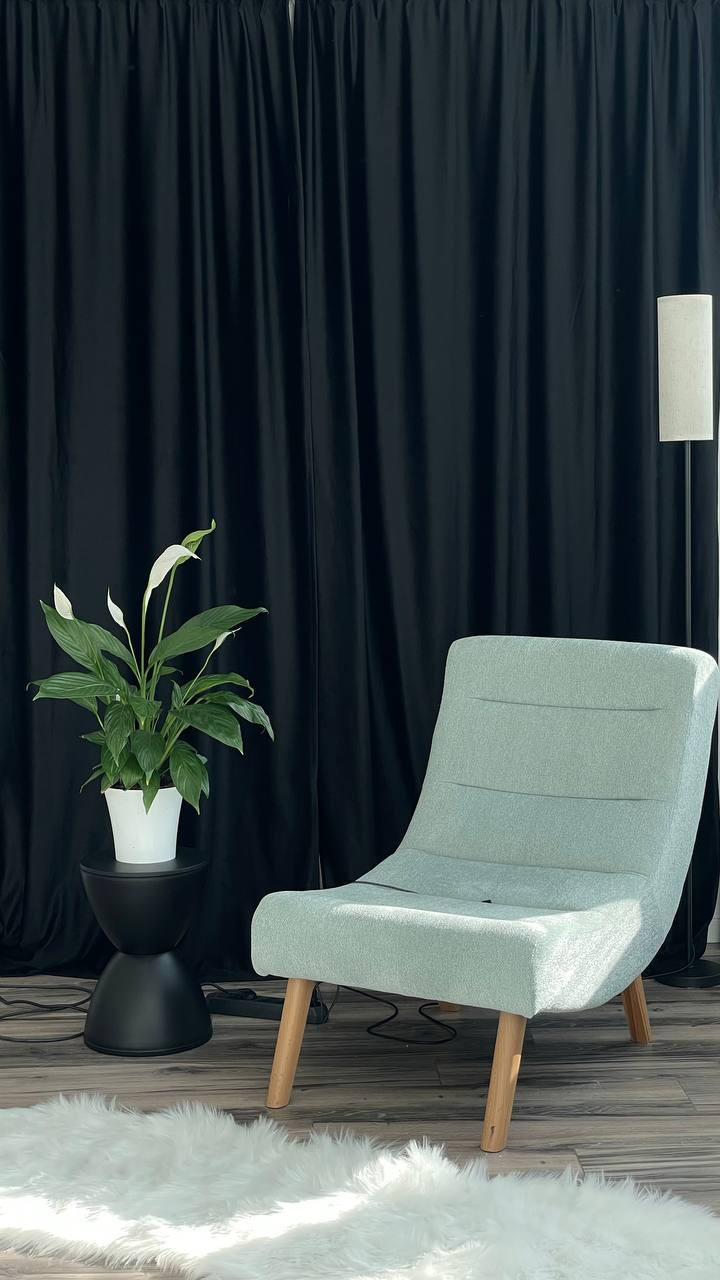 Гримёрка бесплатно на 1 час (бронируется отдельно). Можно забронировать 1 источник постоянного света с октобоксом
