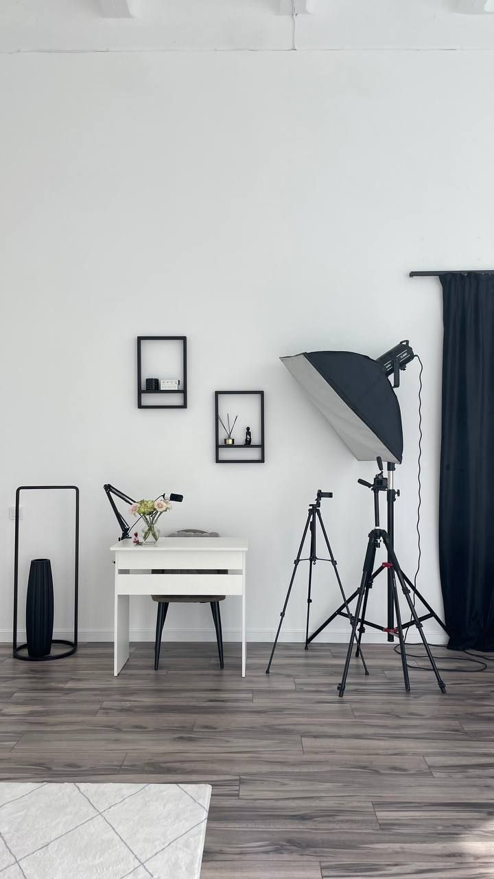 Зал для стильных съёмок. Имеется большое количество зон для фотографии, что позволяет реализовать огромное количество задумок. Также идеально подходит для записи уроков, рилсов, подкастов, проведения мастер-классов, воркшопов.
